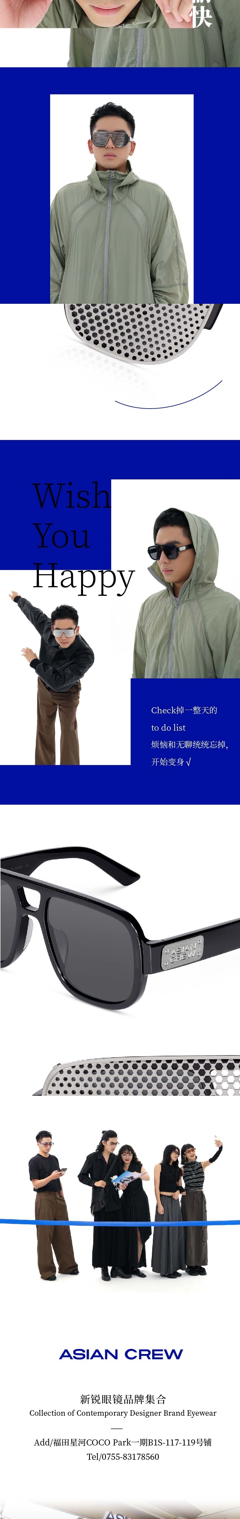 @ Check√丨ASIAN CREW板材双梁太阳镜