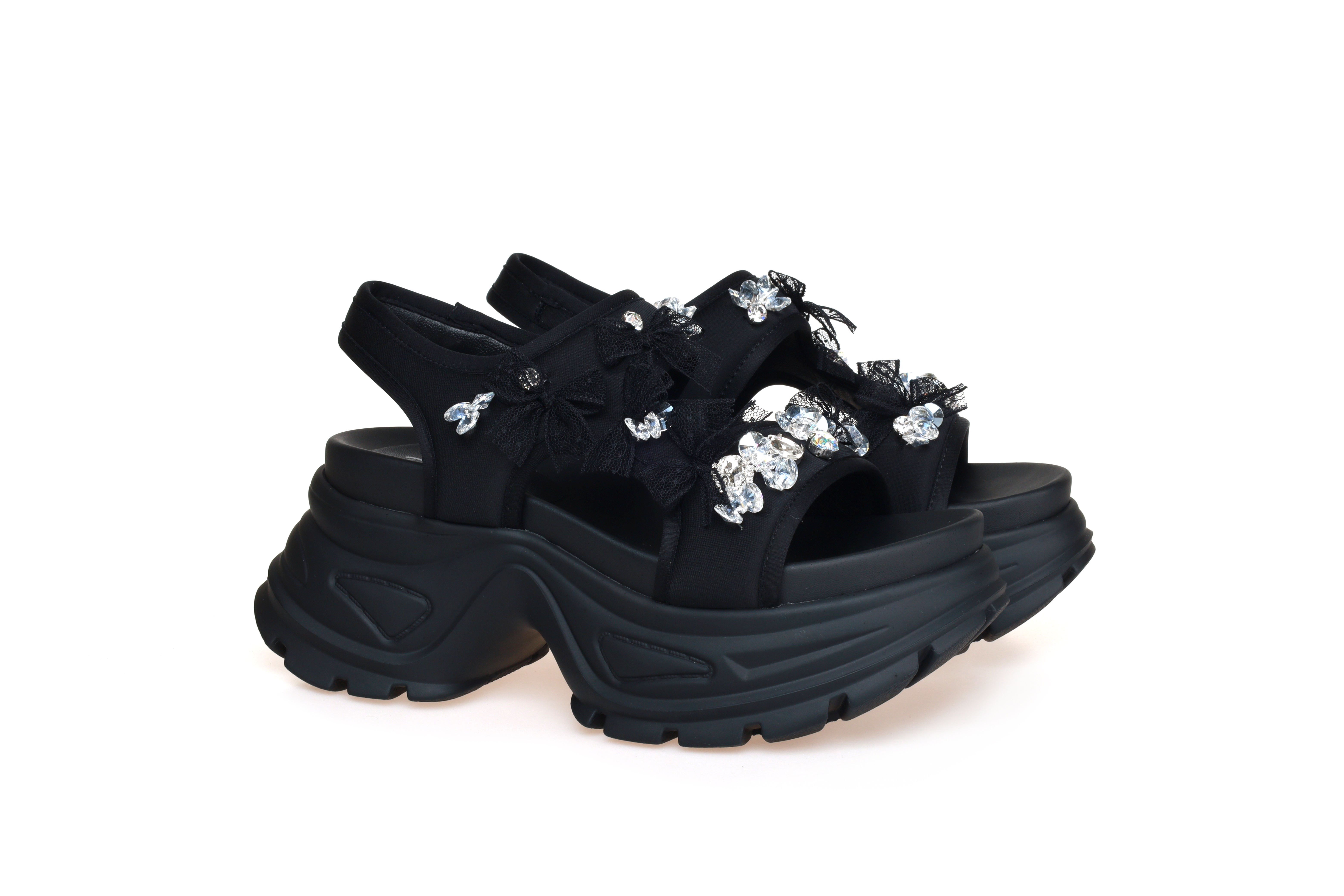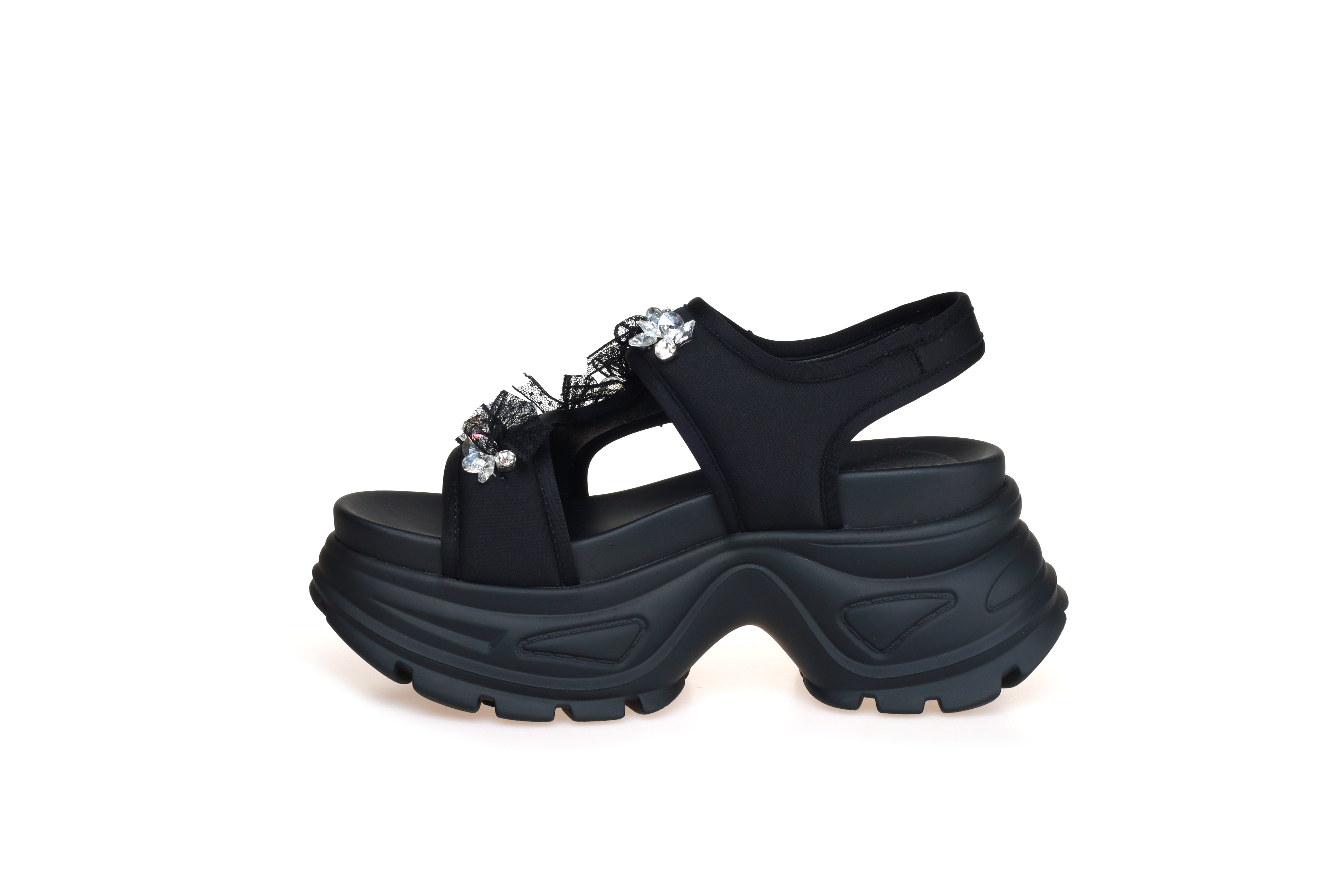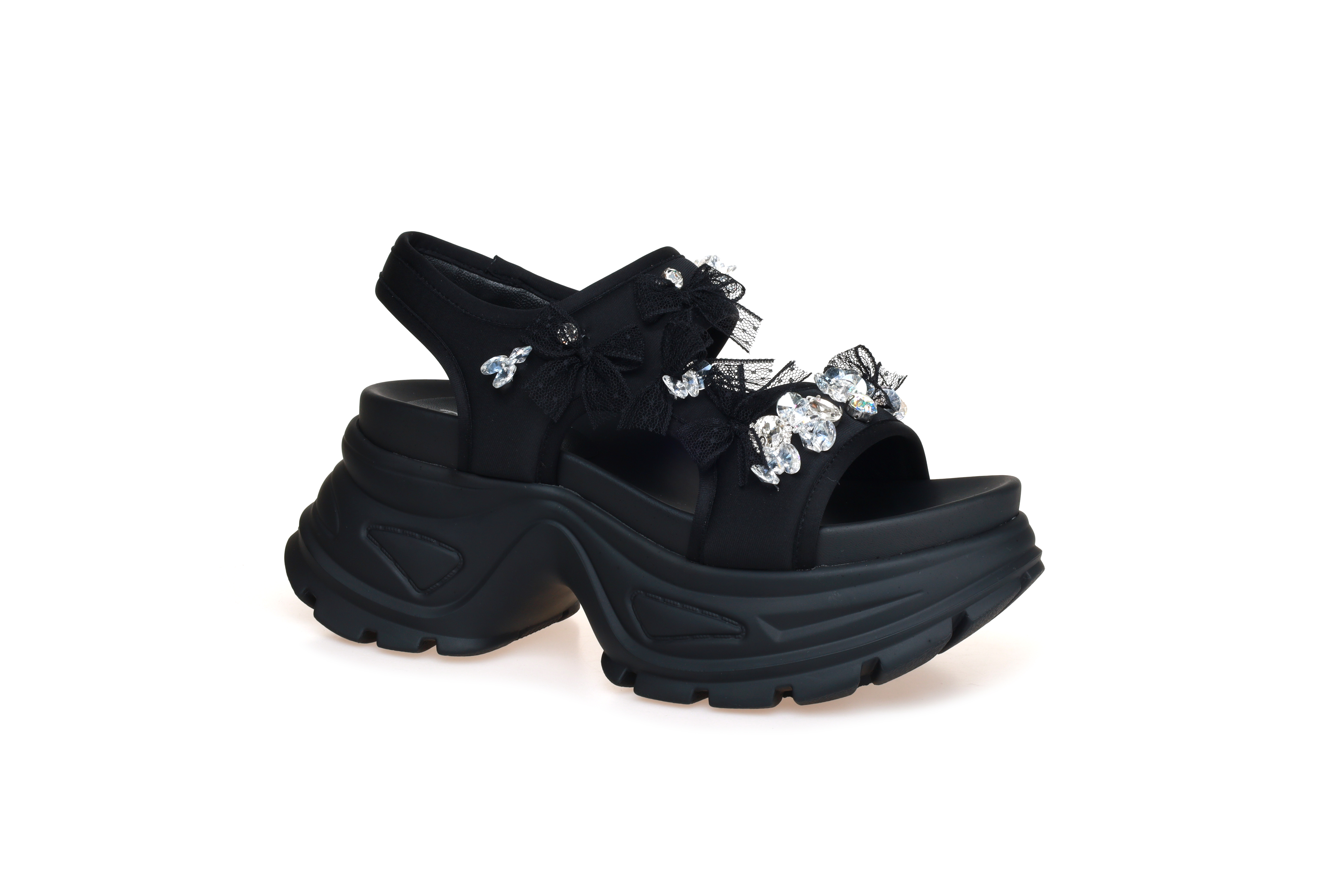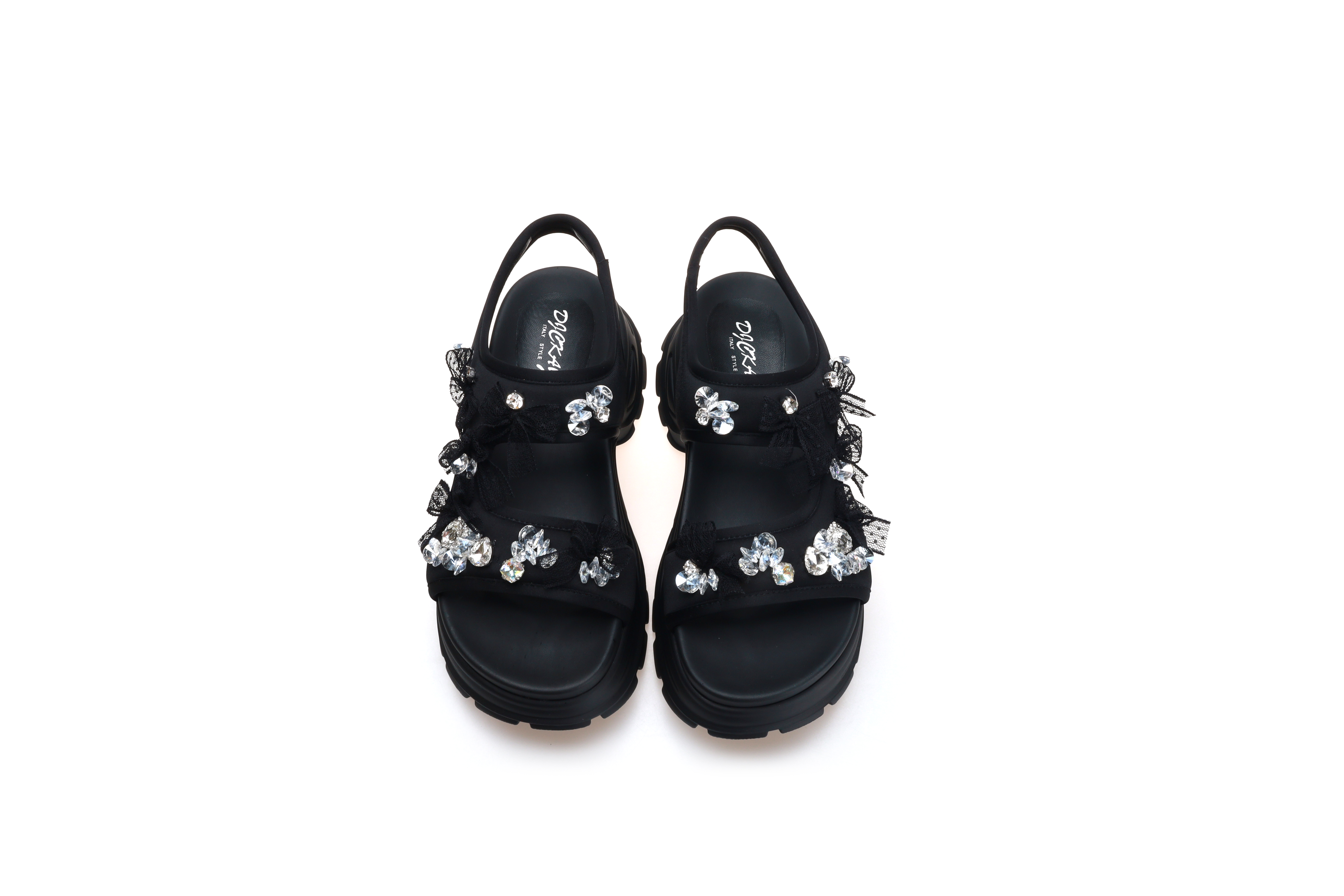 豪麟名鞋奥莱迪嘉女鞋凉鞋织物DJMEO51WL203黑色 原价1660元