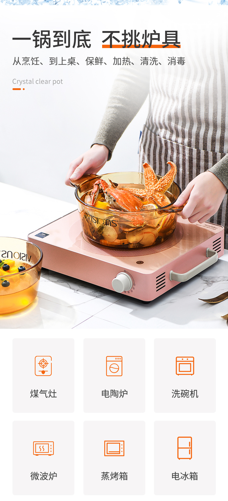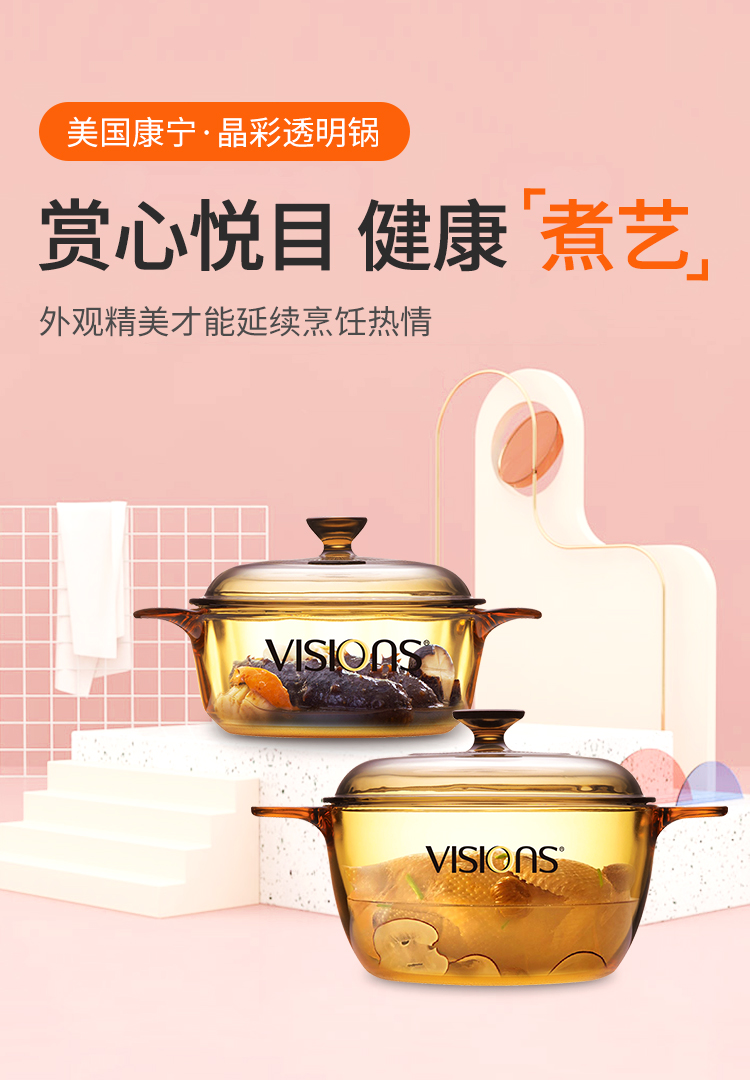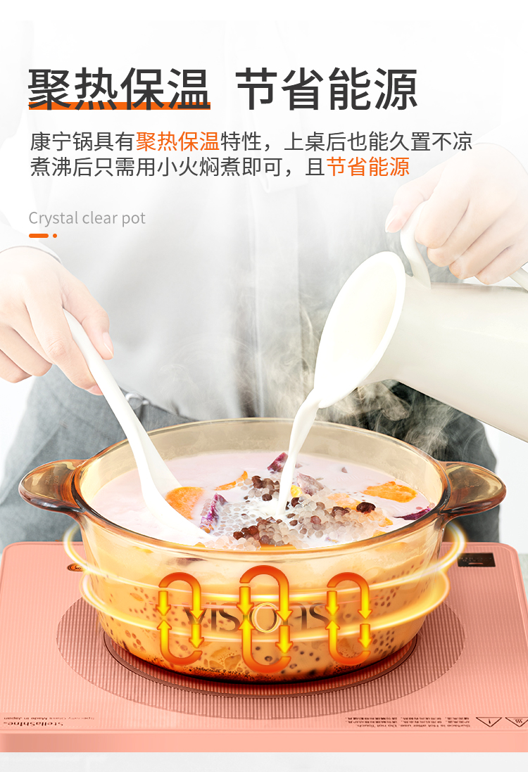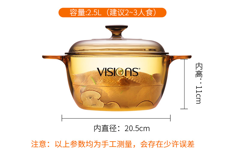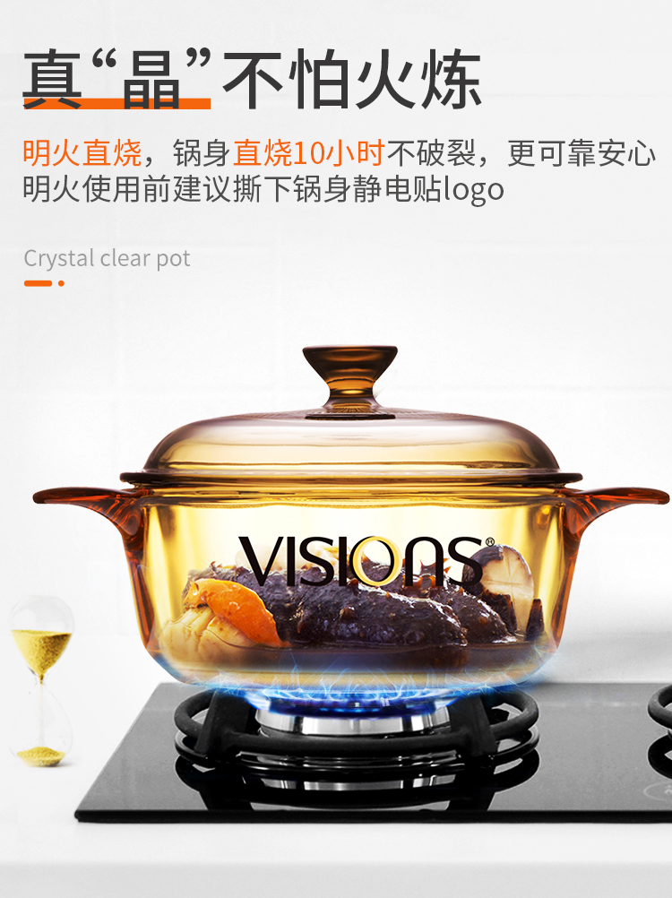 康宁进口晶彩透明锅家用煲汤炖煮玻璃锅2.5L