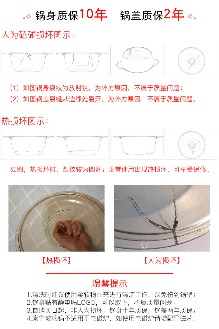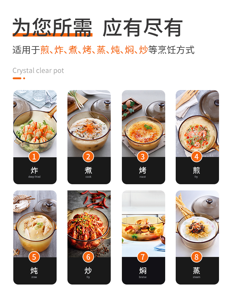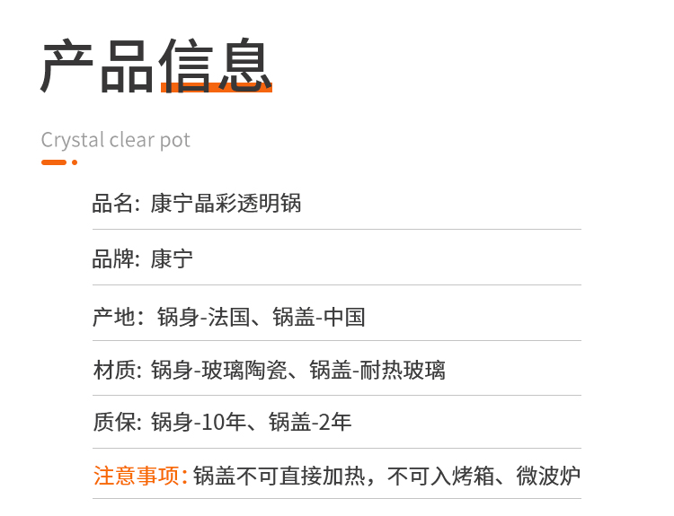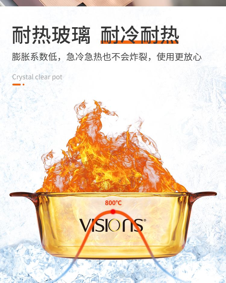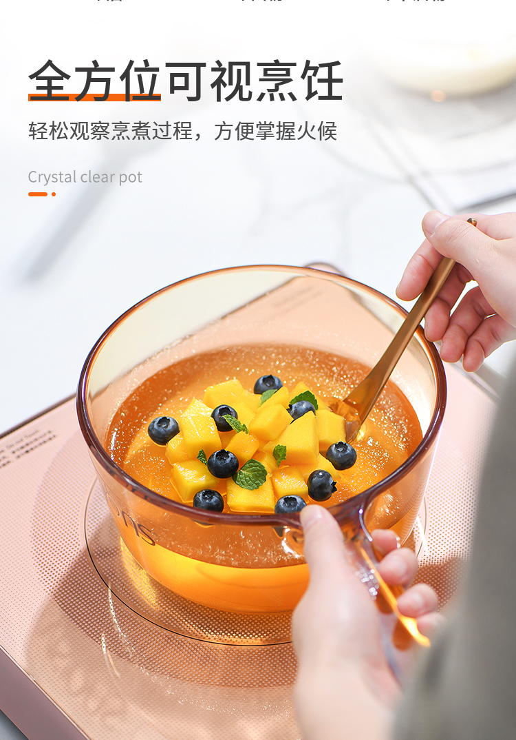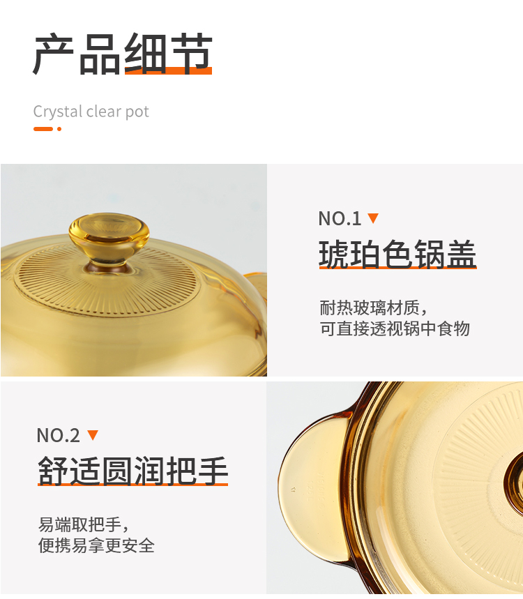 康宁进口晶彩透明锅家用煲汤炖煮玻璃锅2.5L