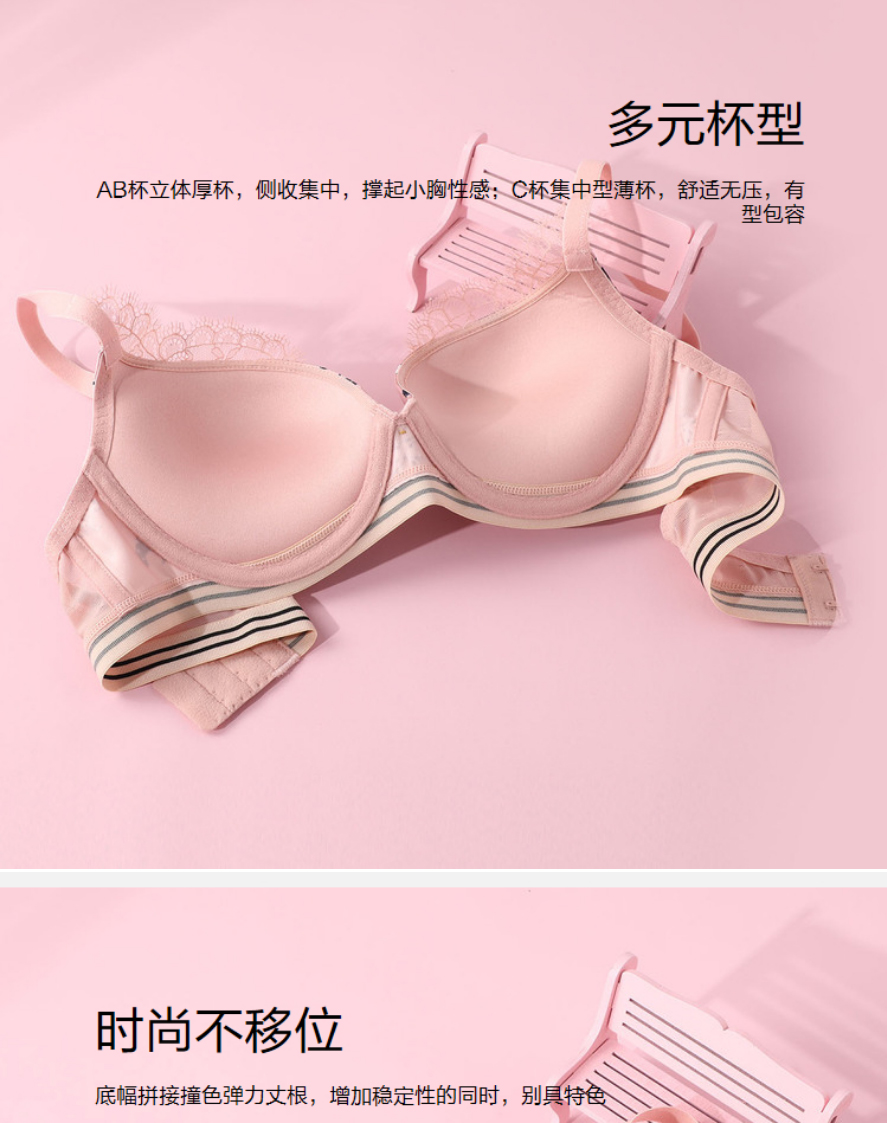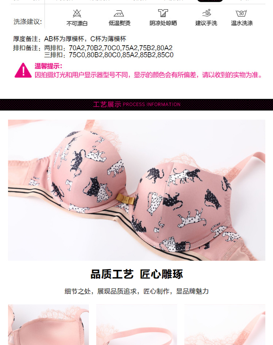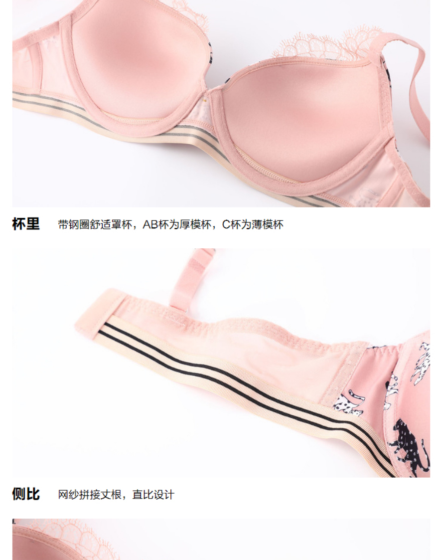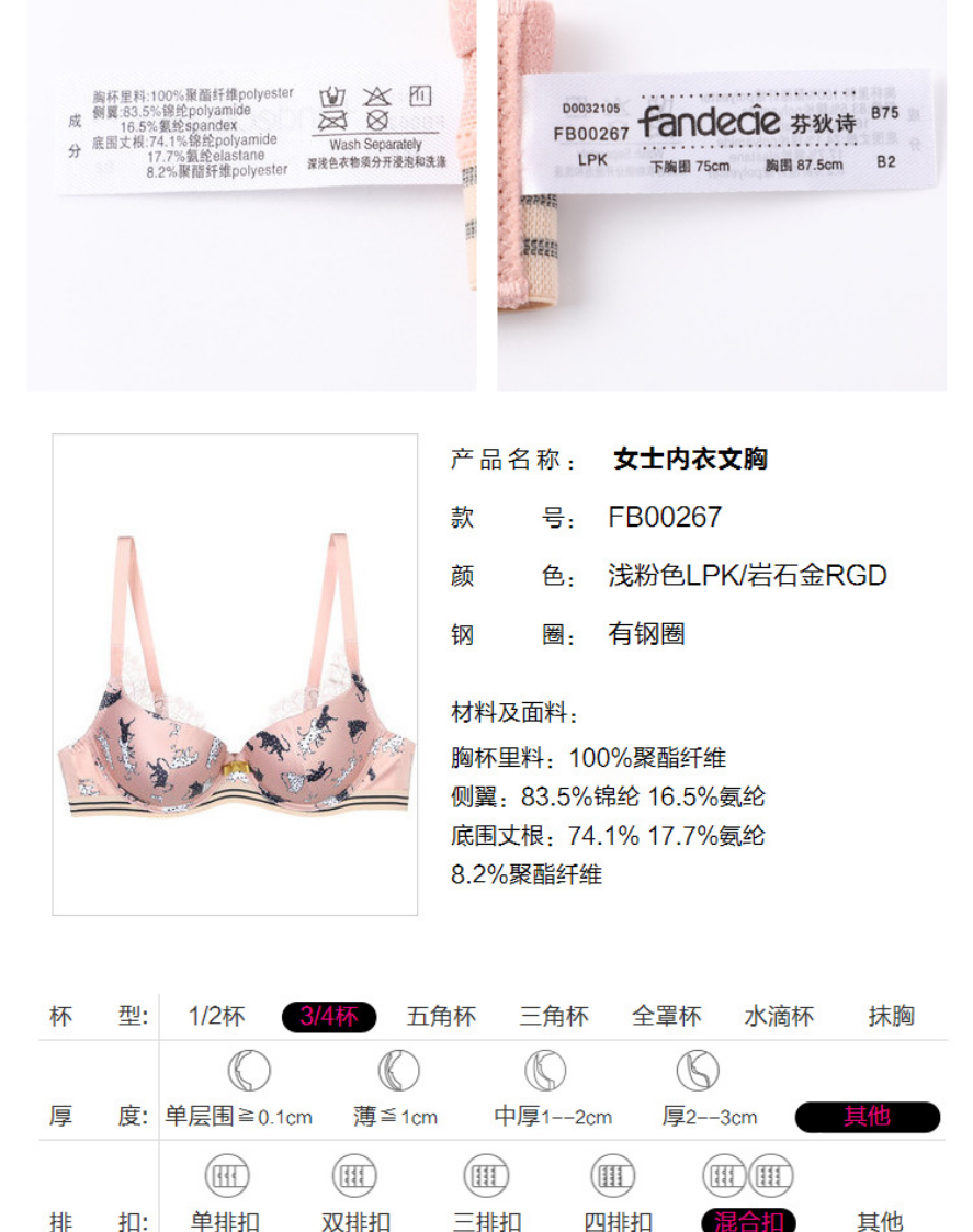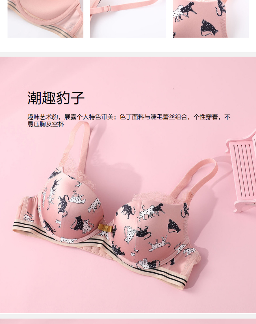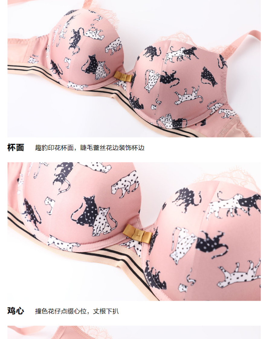 芬狄诗萌宠印花拼接蕾丝小胸软钢圈上托聚拢文胸FB00267