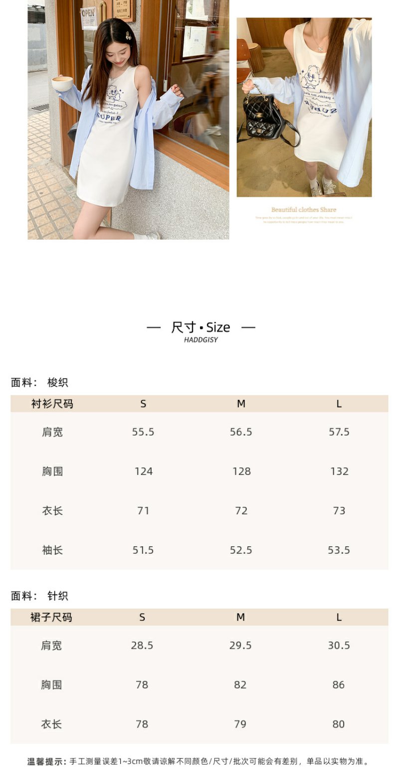 <曾小咸推荐> 【甜心茶会】蓝色两件套背心裙+衬衫