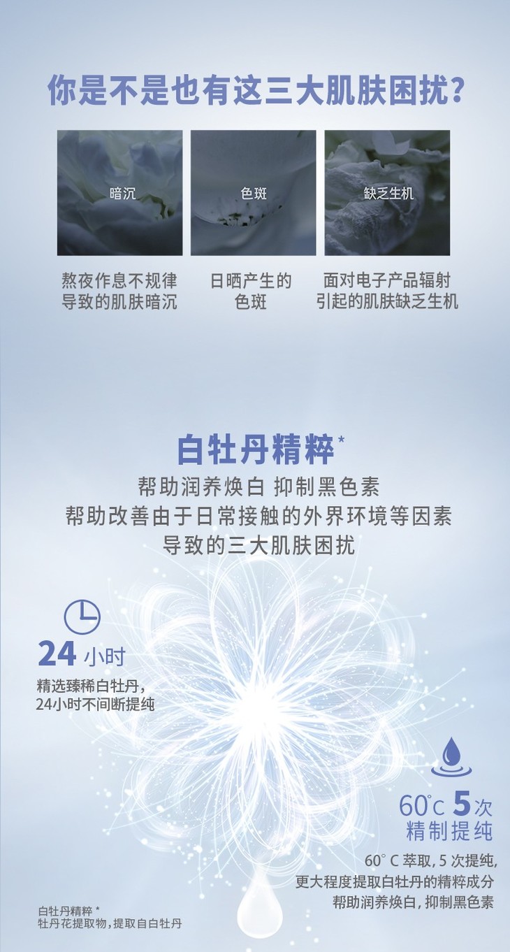 是时候和暗沉说bye bye~三重焕白科技,层层递进,还原亮白肌肤,焕现透白光芒!