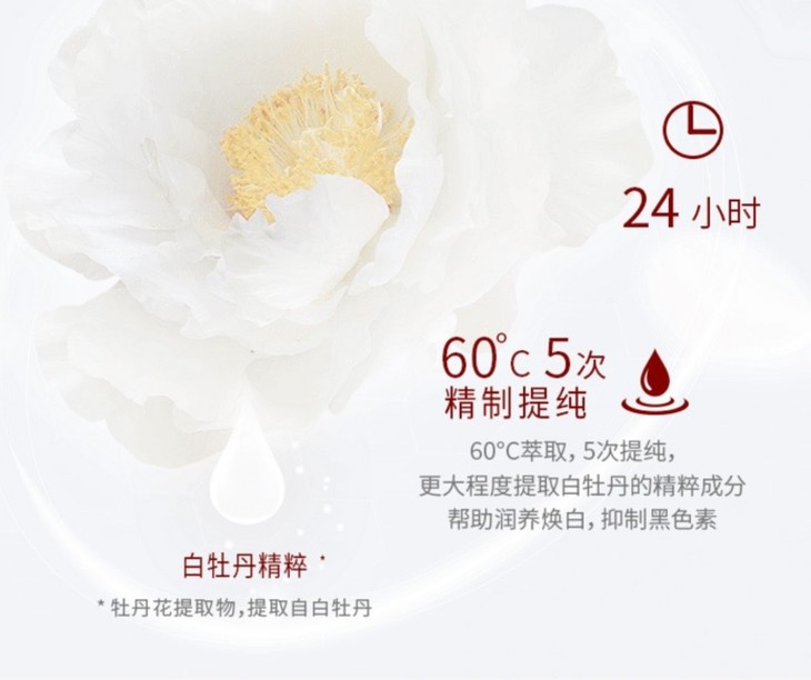 牡丹自古以来就是美丽和富贵的象征,因其醉人的芬芳、夺目的花色和艳丽的花姿,被誉为“国色天香”和“花中之王”。 白牡丹花富含大量生命营养和活性物质(如VA、VE、尼克酸、胡萝卜素、不饱和脂肪酸)。具有滋润养颜、保湿补水功效。研究表明,长期使用白牡丹提取精华可明显改善皮肤细胞循环功能,有很好的保湿亮白功效。