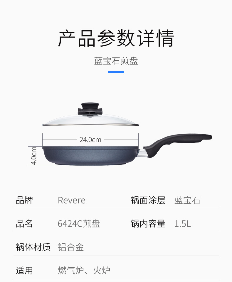 【小家电】Revere 蓝宝石系列24CM煎盘RWS-6424C/YK HF