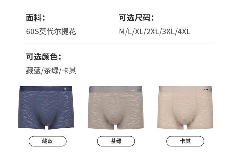 都市丽人铂金舒适莫代尔平角60S莫代尔提花平角裤FKHH07