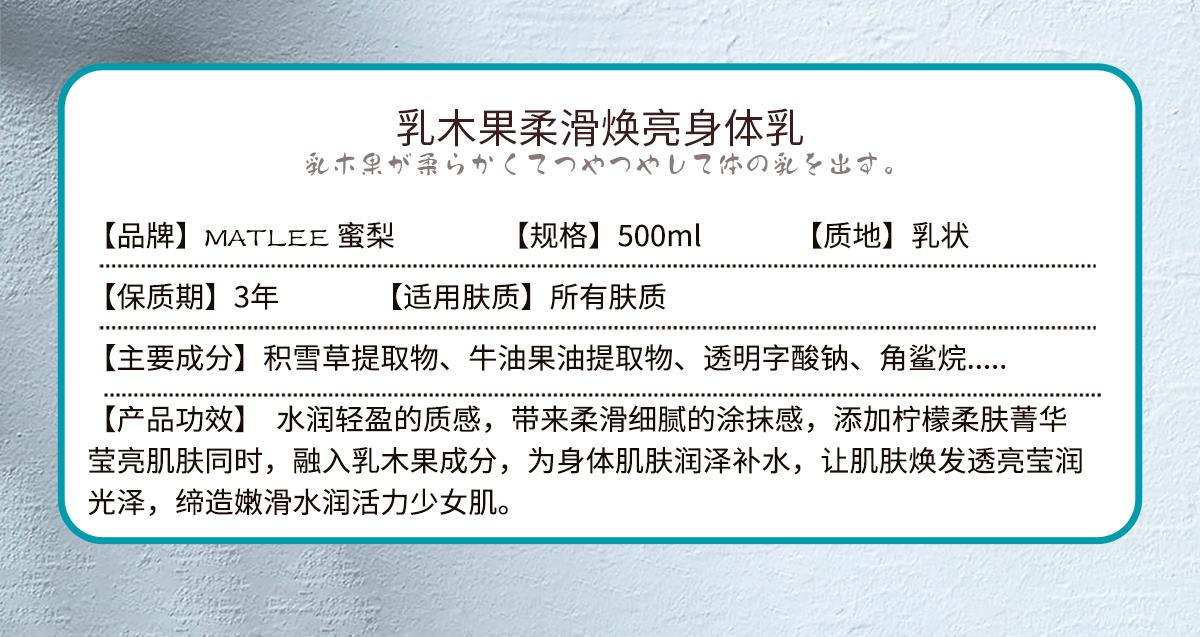 【中欧班列】日本蜜梨品牌身体乳乳木果柔滑焕亮身体乳 500ml/瓶