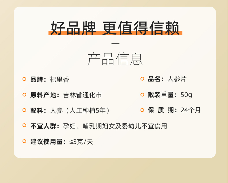 杞里香长白山深山5年老龄人参片片片精挑人参片0.8-1.0人参片50g