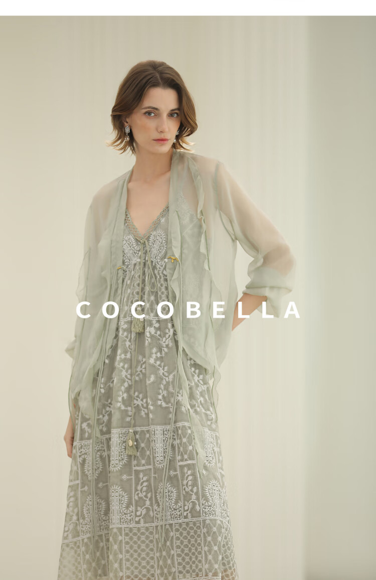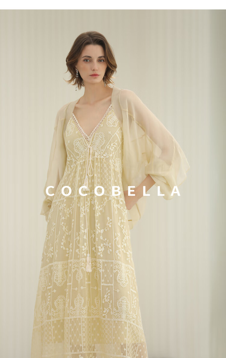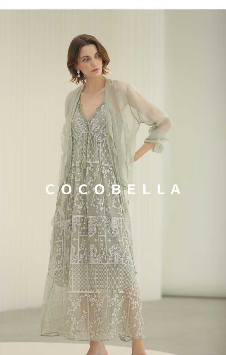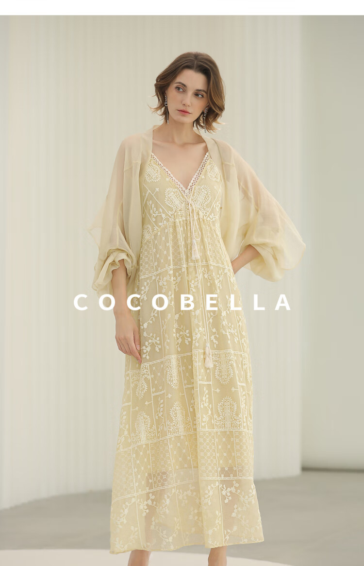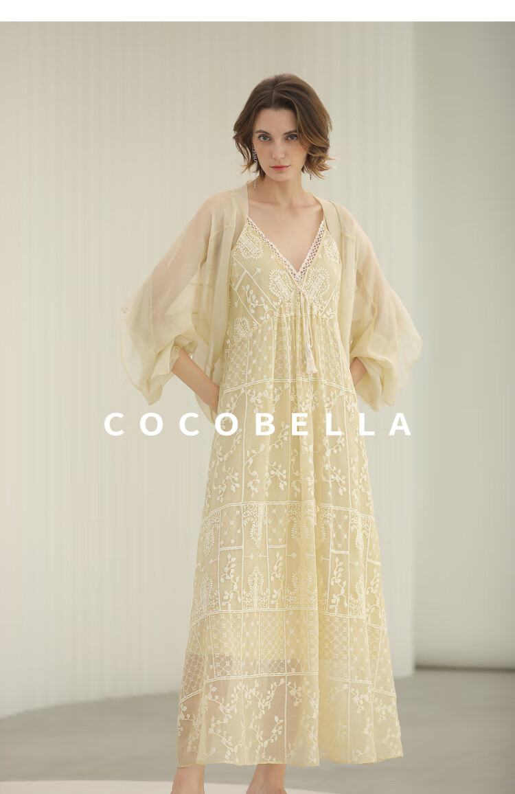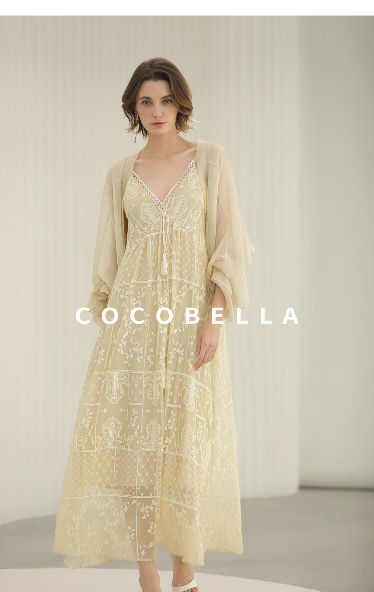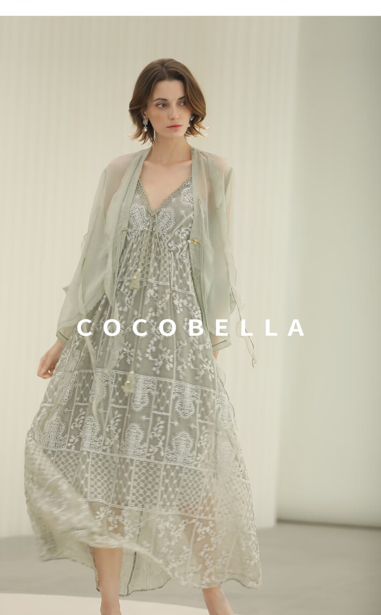 COCOBELLA万针刺绣炒色流苏仙女连衣裙蕾丝拼接吊带裙FR0079