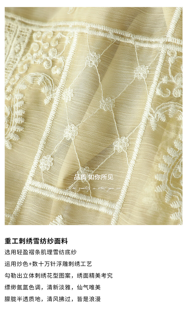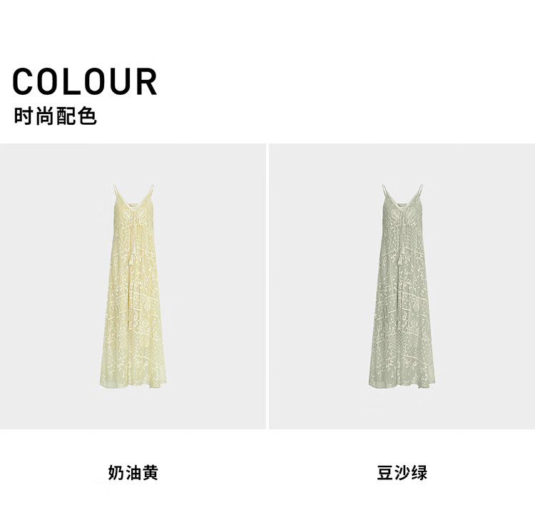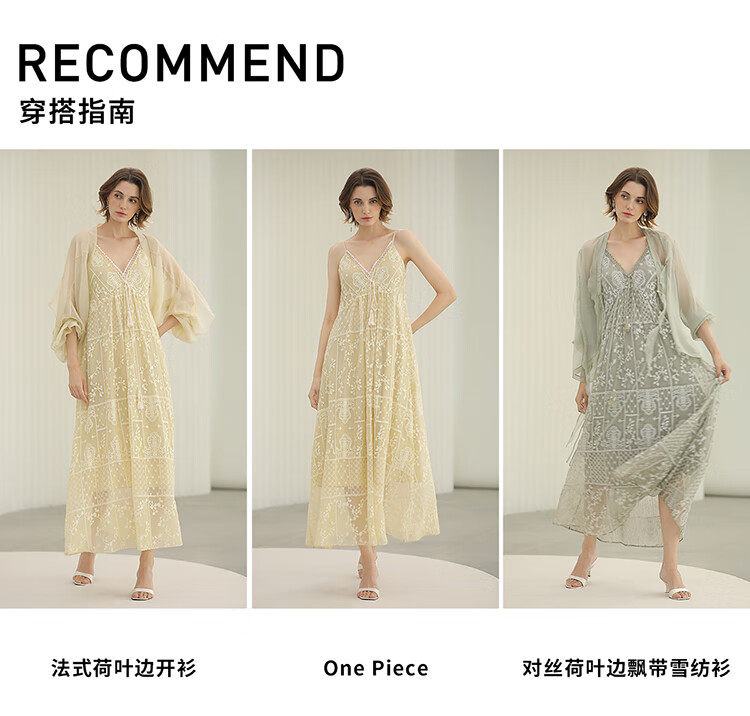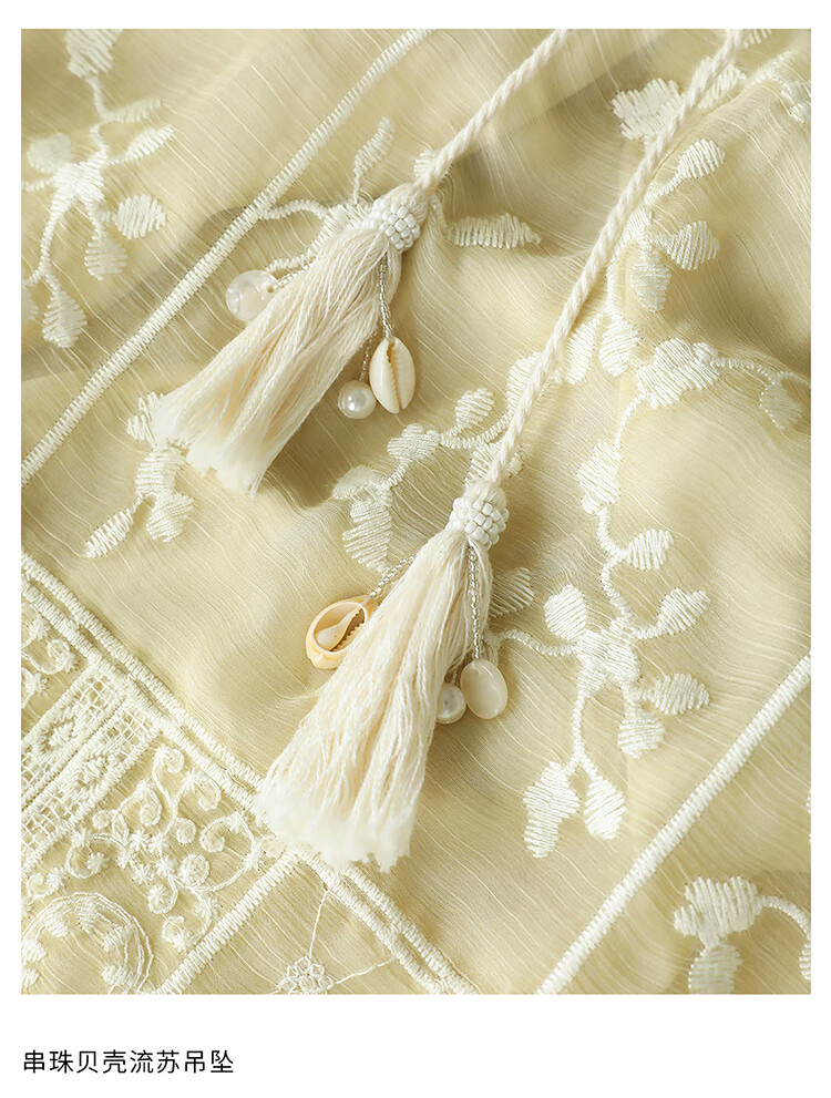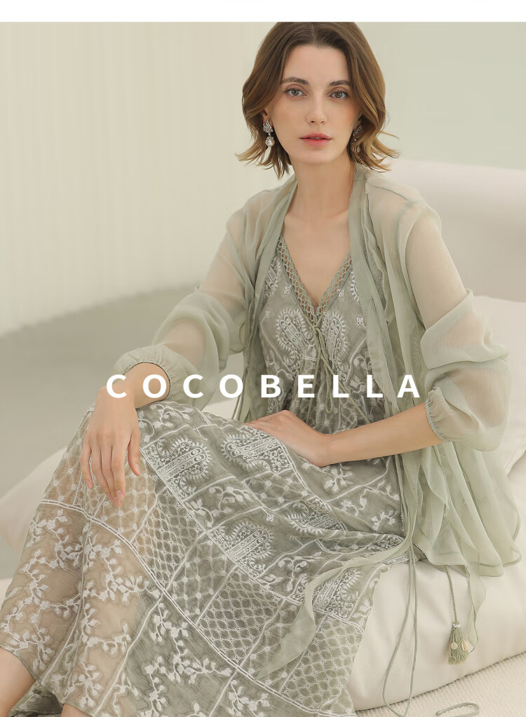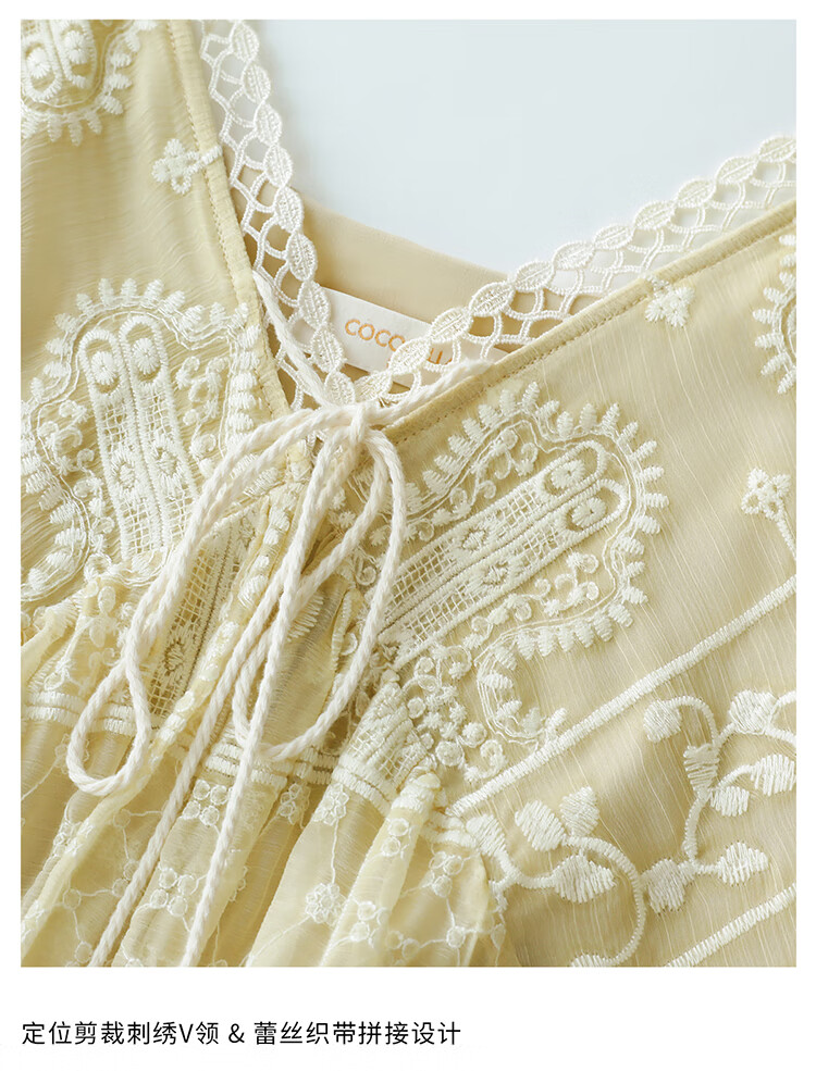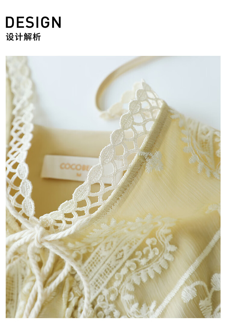 COCOBELLA万针刺绣炒色流苏仙女连衣裙蕾丝拼接吊带裙FR0079