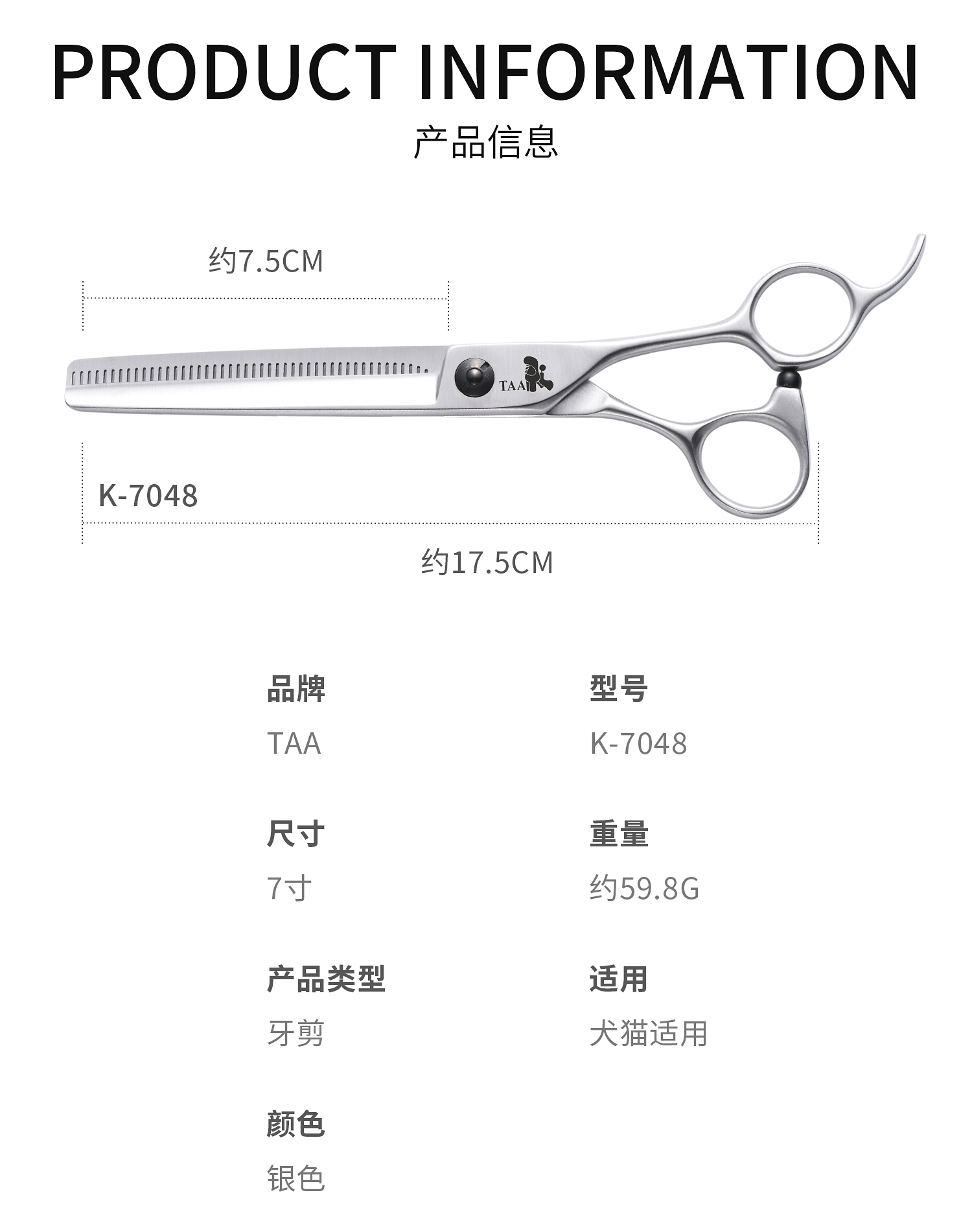 TAA它它宠物美容7寸精修牙剪K-7048狗猫修毛用蓬松泰迪