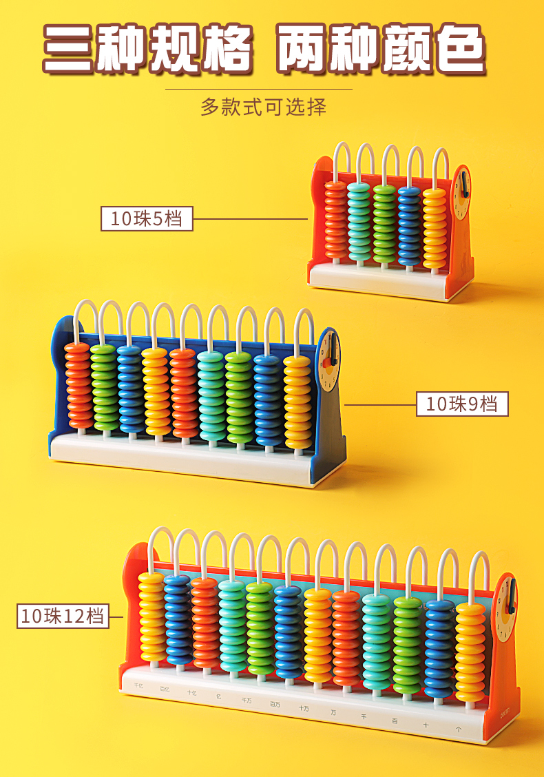 「三种规格!两种颜色」得力计数器小学一二年级儿童数学教具小棒加减法神器算术启蒙算盘