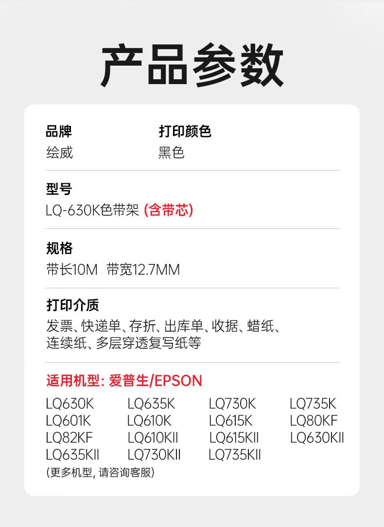 绘威LQ630K/LQ730K色带架4支装 适用爱普生EPSON LQ630K LQ635K LQ730K LQ735K II LQ80KF打印机