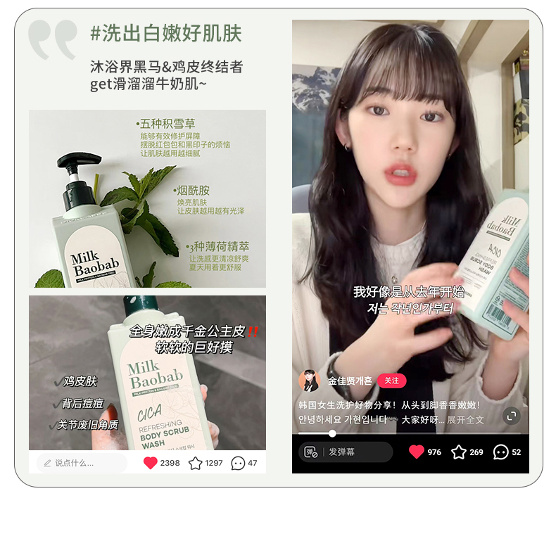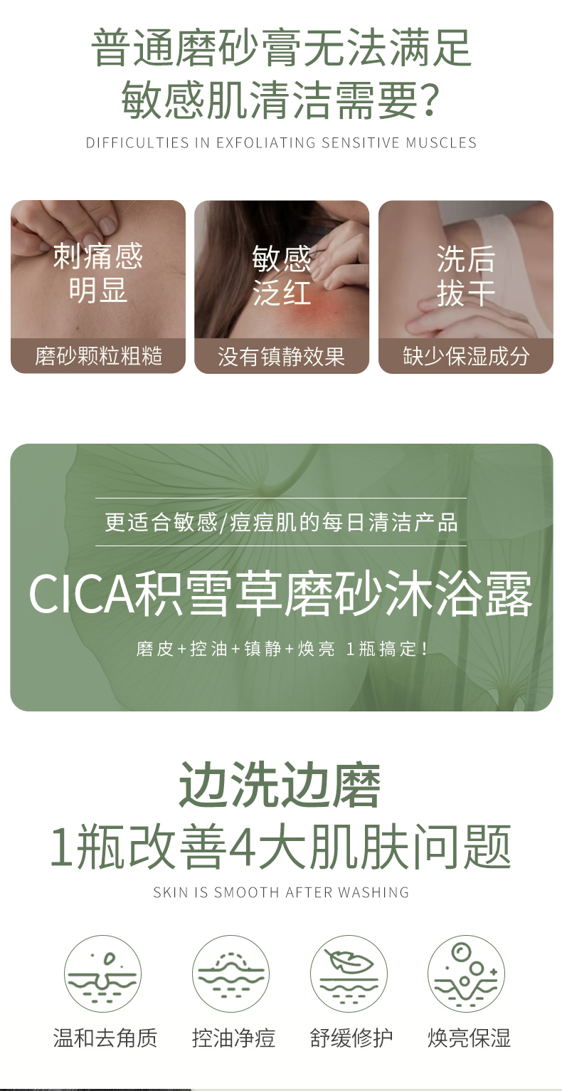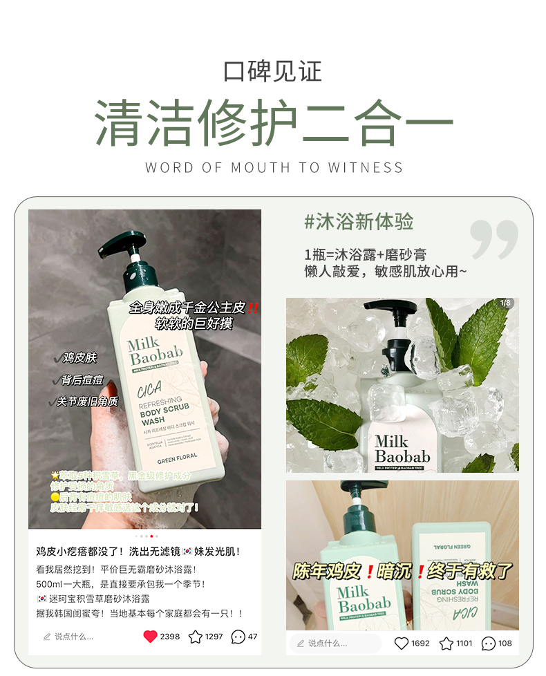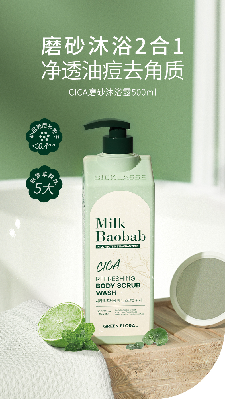 【保税仓】迷珂宝CICA清爽积雪草磨砂沐浴露500ml