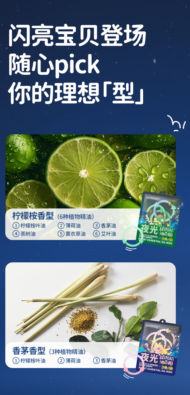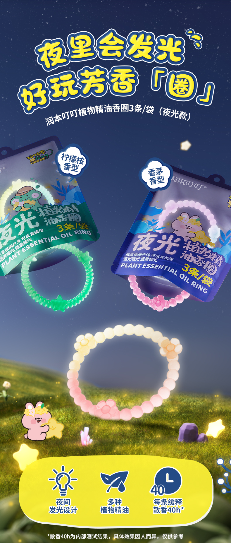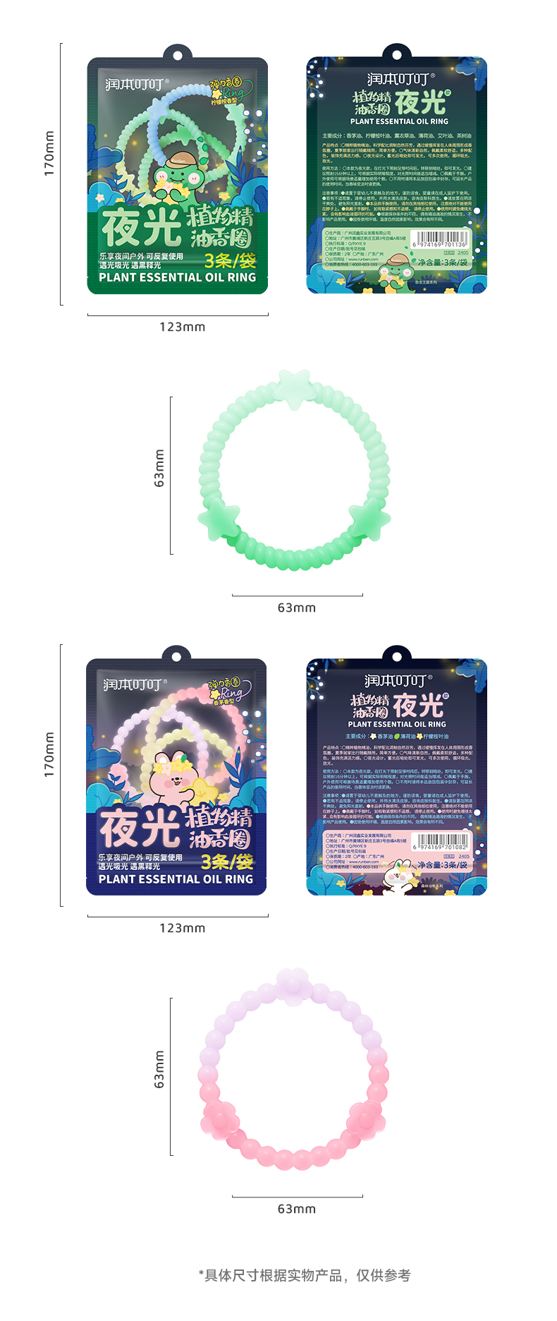 【夜光款】润本叮叮植物精油手环 户外专用随身手链