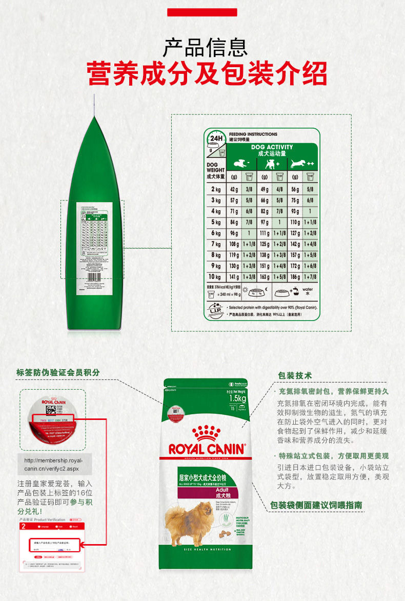 皇家狗粮居家小型犬成犬粮 1.5kg
