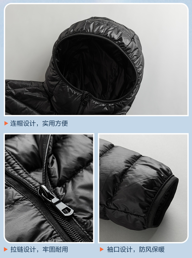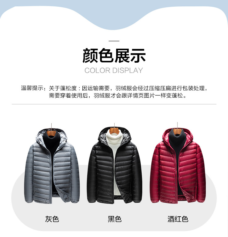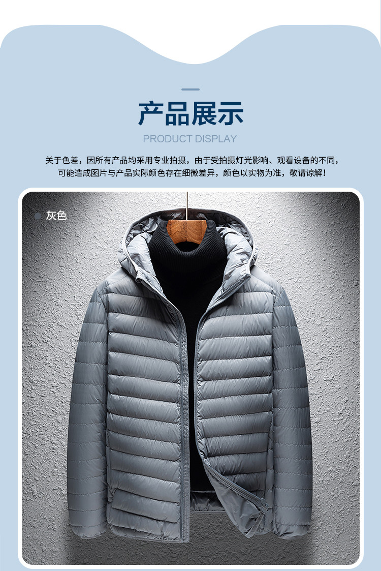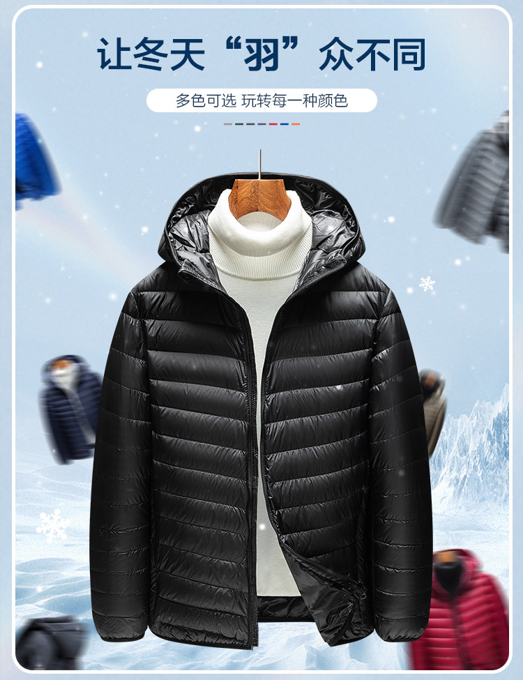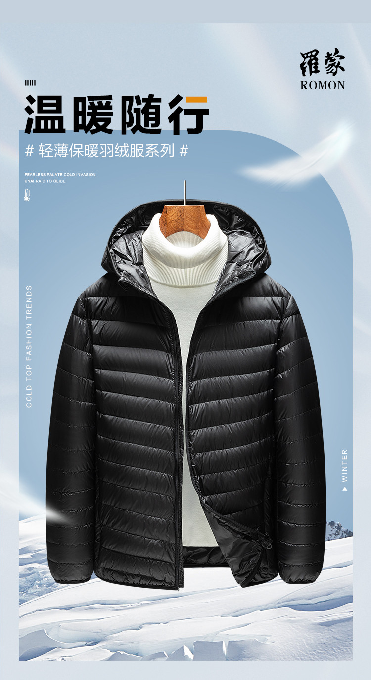 【90白鸭绒】罗蒙男士轻薄羽绒服男短款秋冬纯色连帽外套男士羽绒服