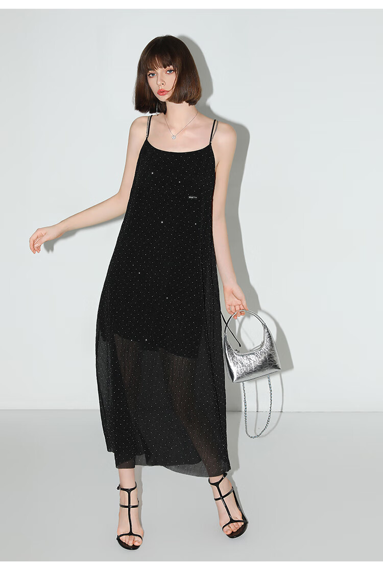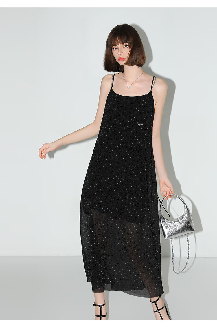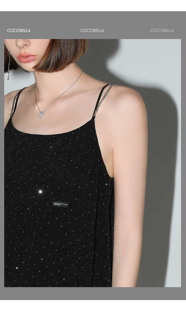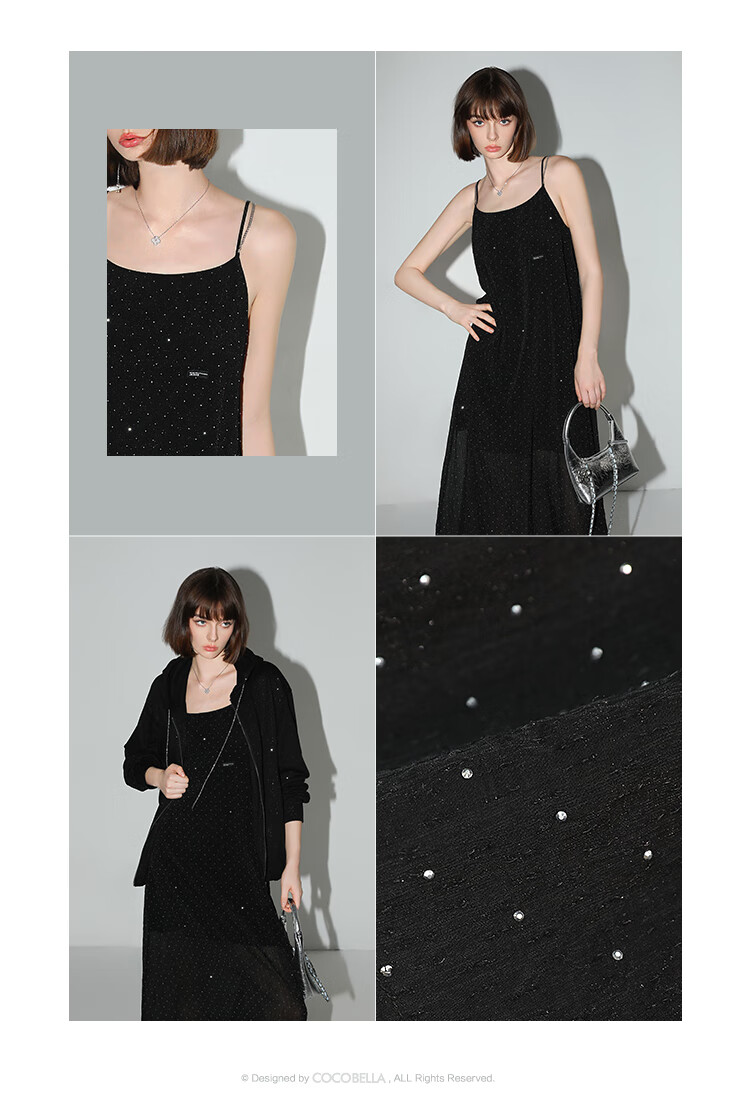 【限时秒杀】COCOBELLA璀璨星河烫钻肌理感吊带裙设计感肩带连衣裙FR0030