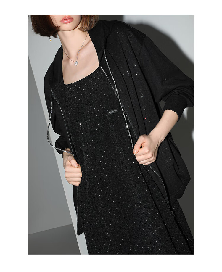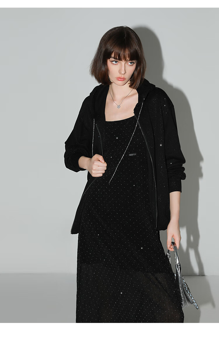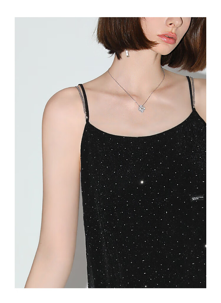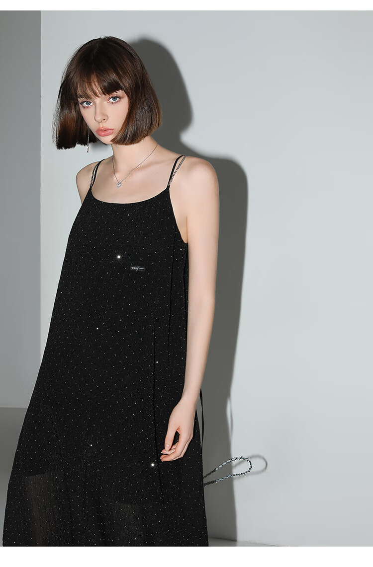 【限时秒杀】COCOBELLA璀璨星河烫钻肌理感吊带裙设计感肩带连衣裙FR0030
