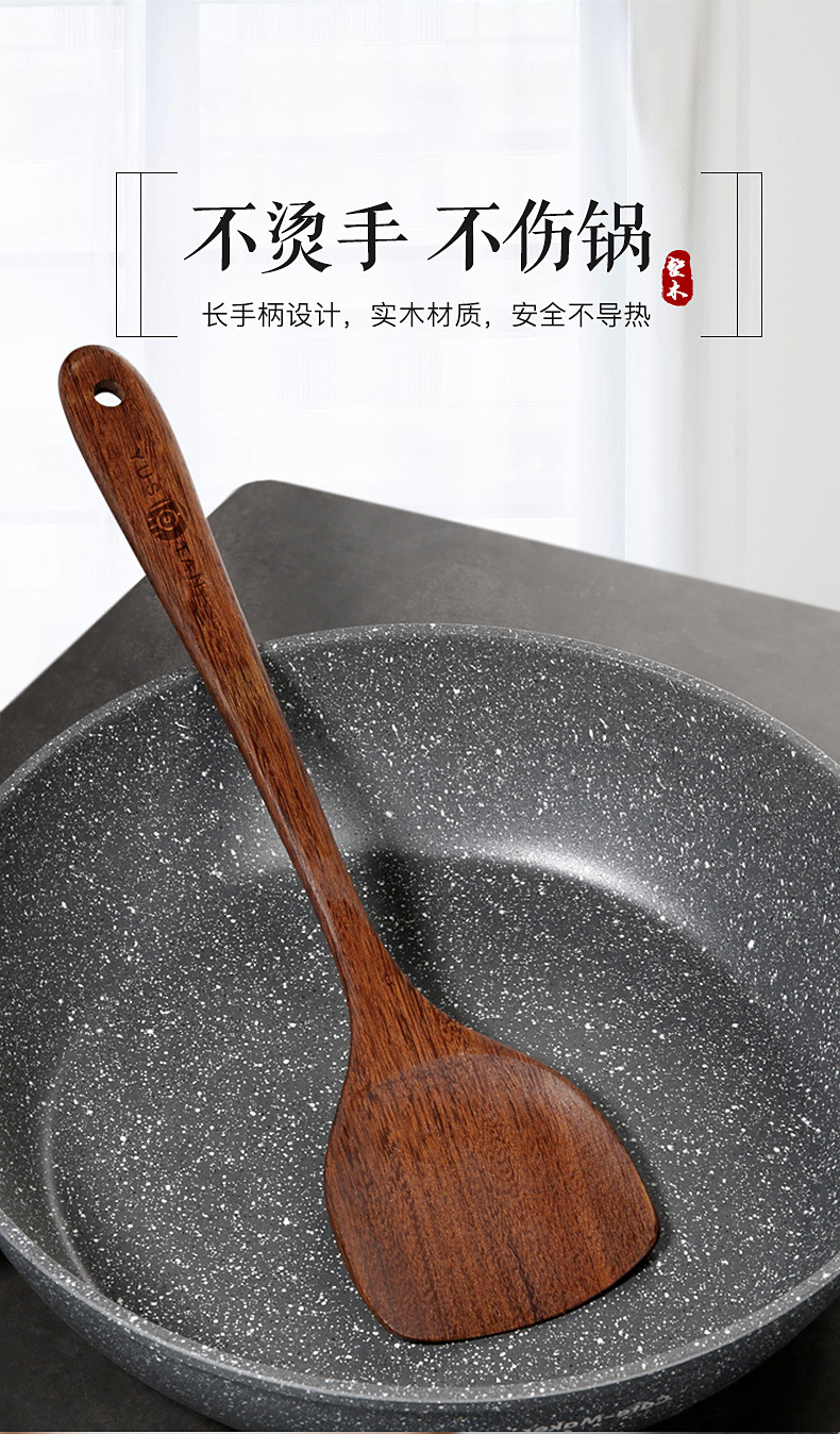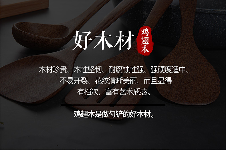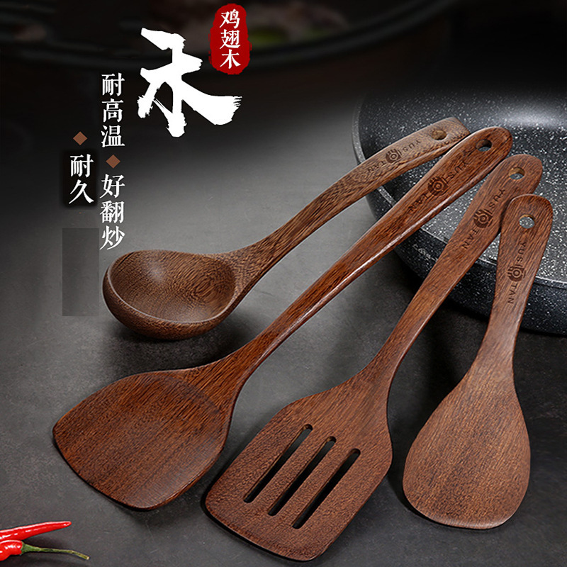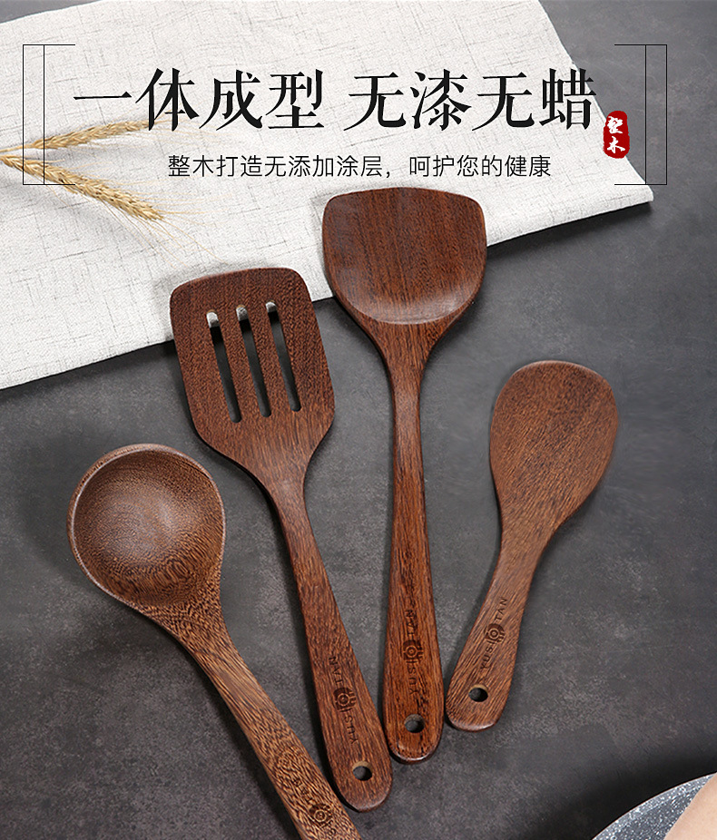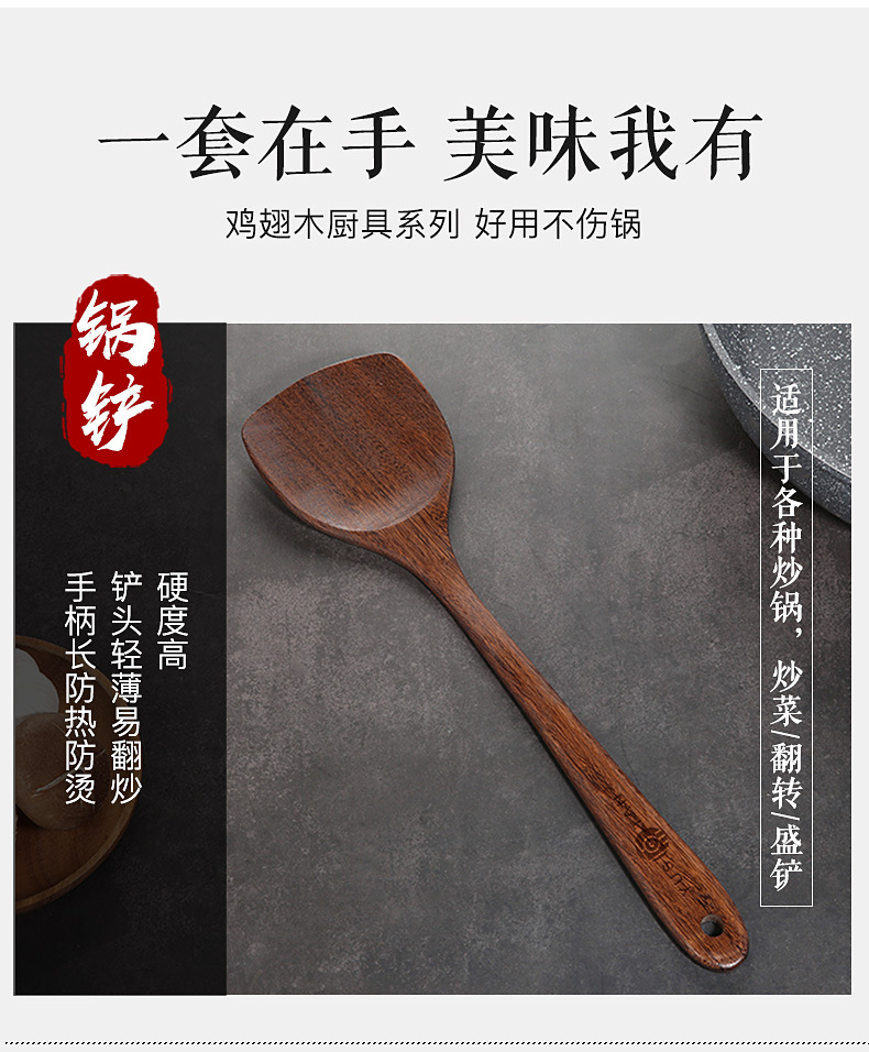 【无漆无蜡 耐高温】原森太整木鸡翅木勺铲套装 原木木勺子 实木木勺铲套装