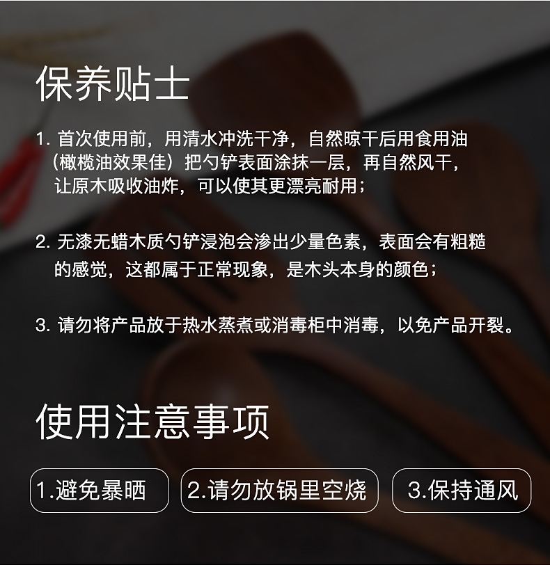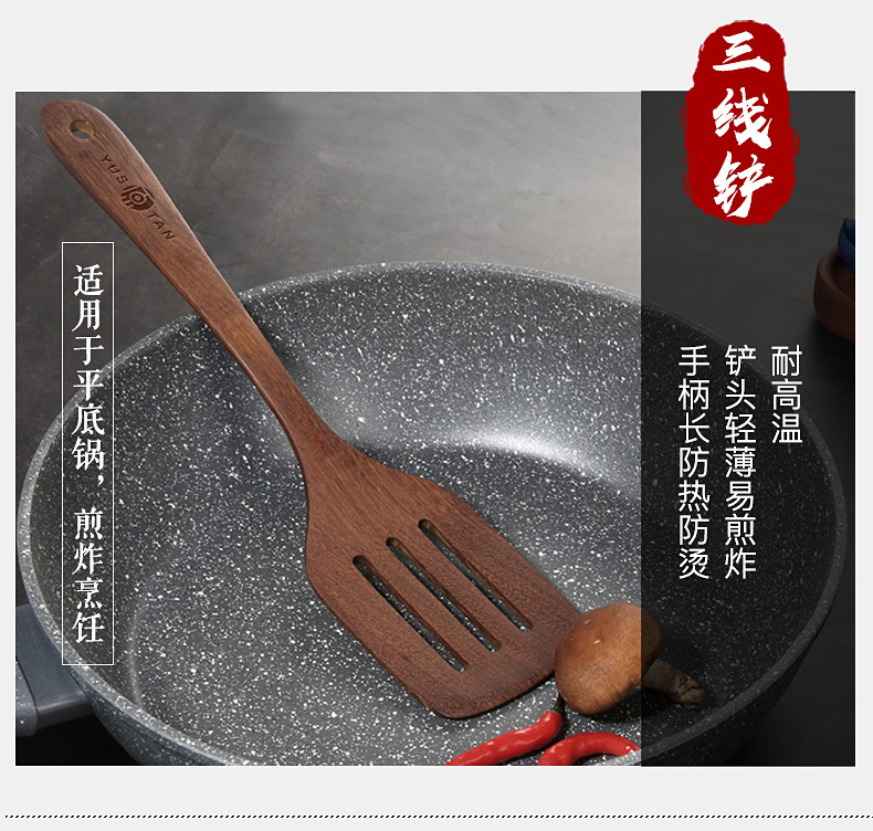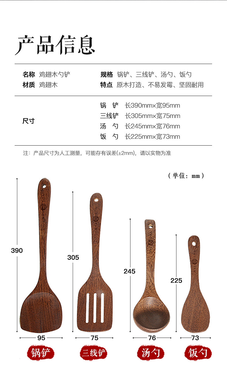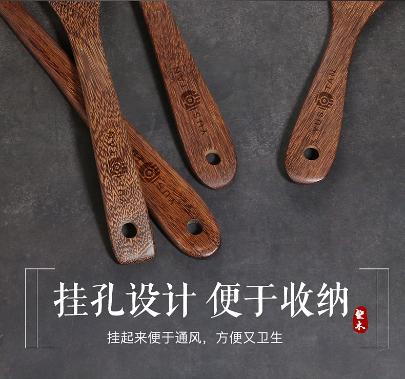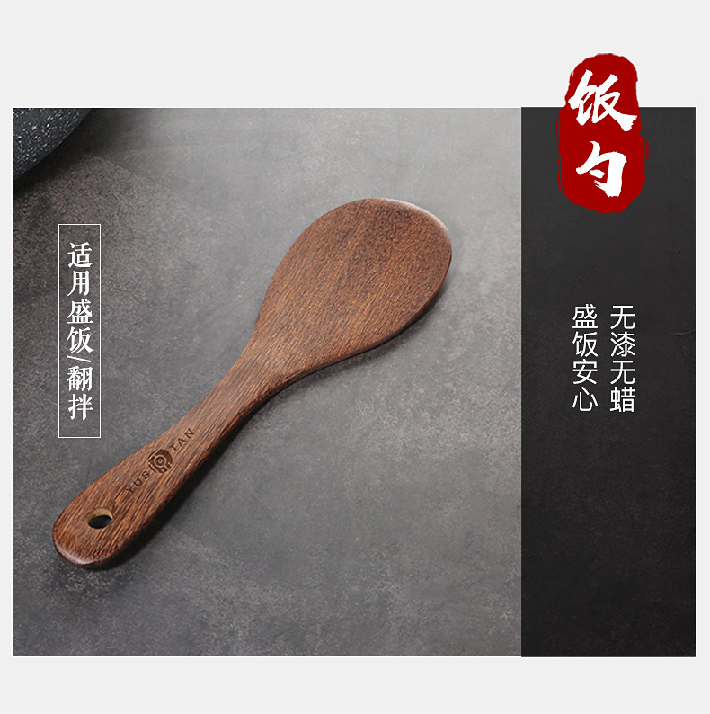 【无漆无蜡 耐高温】原森太整木鸡翅木勺铲套装 原木木勺子 实木木勺铲套装