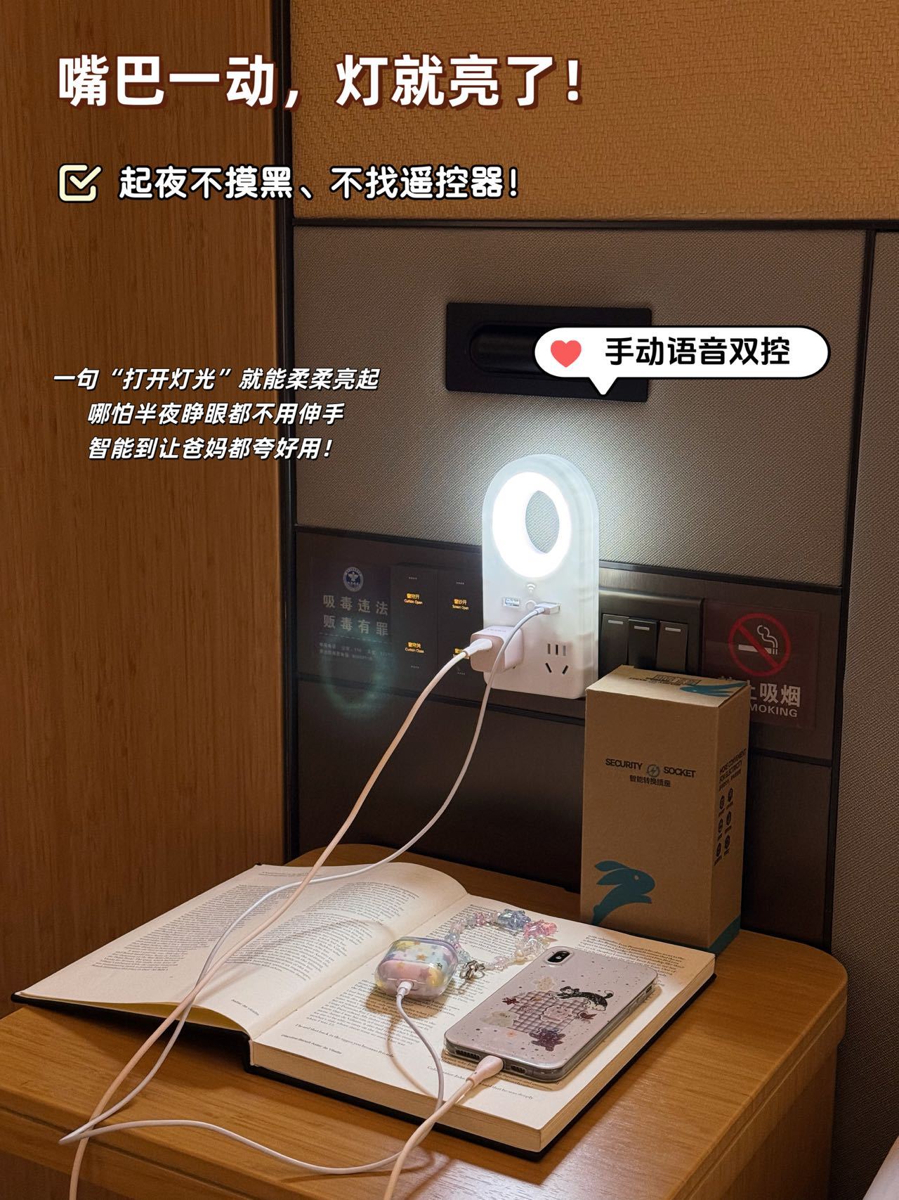 3天左右发货【私人床头管家】SOOKIE智能语音小夜灯开关插座 插座+夜灯+USB充电,支持语音口令操作!无需联网即插即用,三色光源母婴可用,双排多USB充电口,轻松兼容设备
