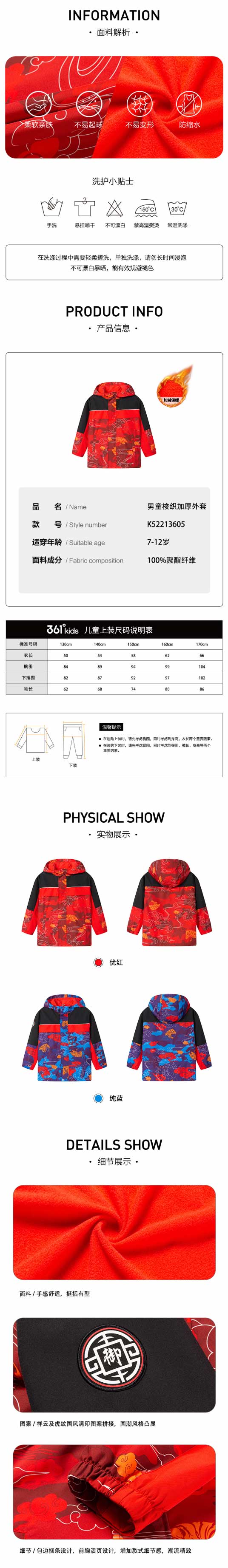 小361男童梭织加厚外套儿童加绒外衣2022虎年新款k52213605-1/2