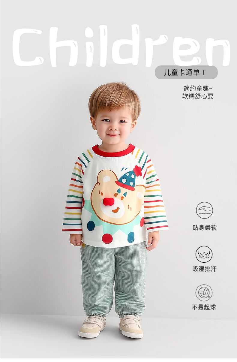 【春季新品】男女童卡通长袖t恤春秋婴儿小童打底衫上衣潮衣印花洋气