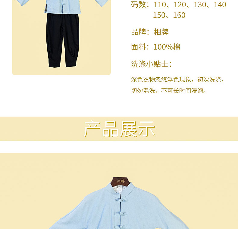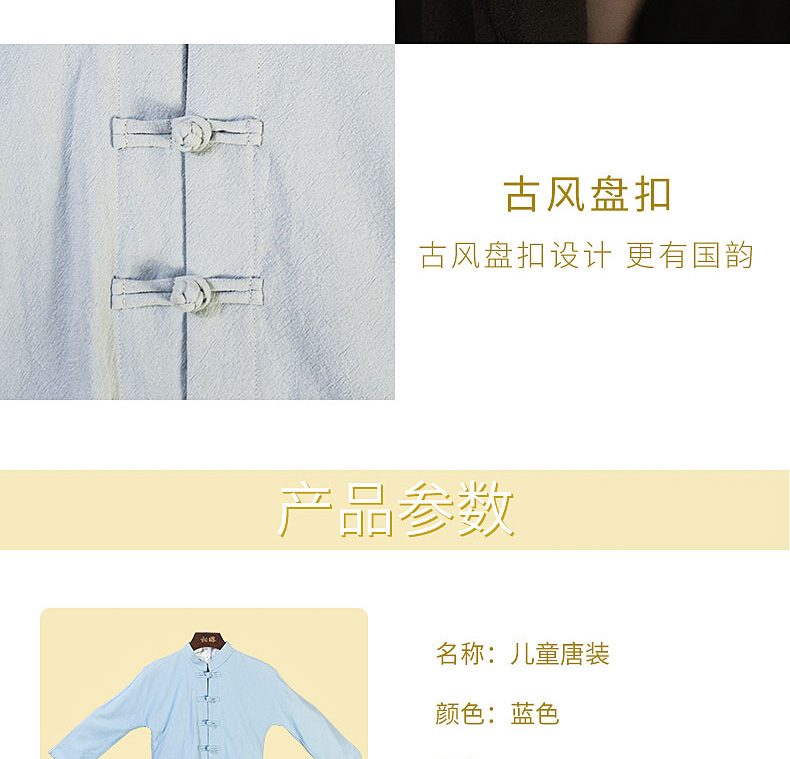 【相牌】全棉儿童唐装 布扣 纯色 汉服男女 民族服装时尚百搭