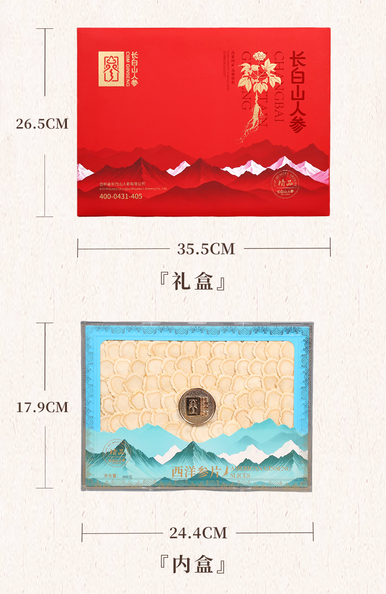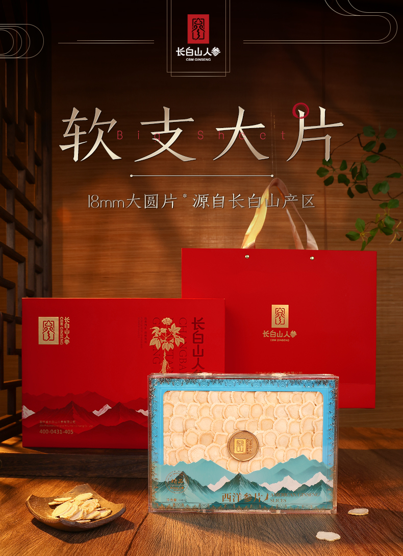 热卖【长白山人参】西洋参片高档礼盒100g