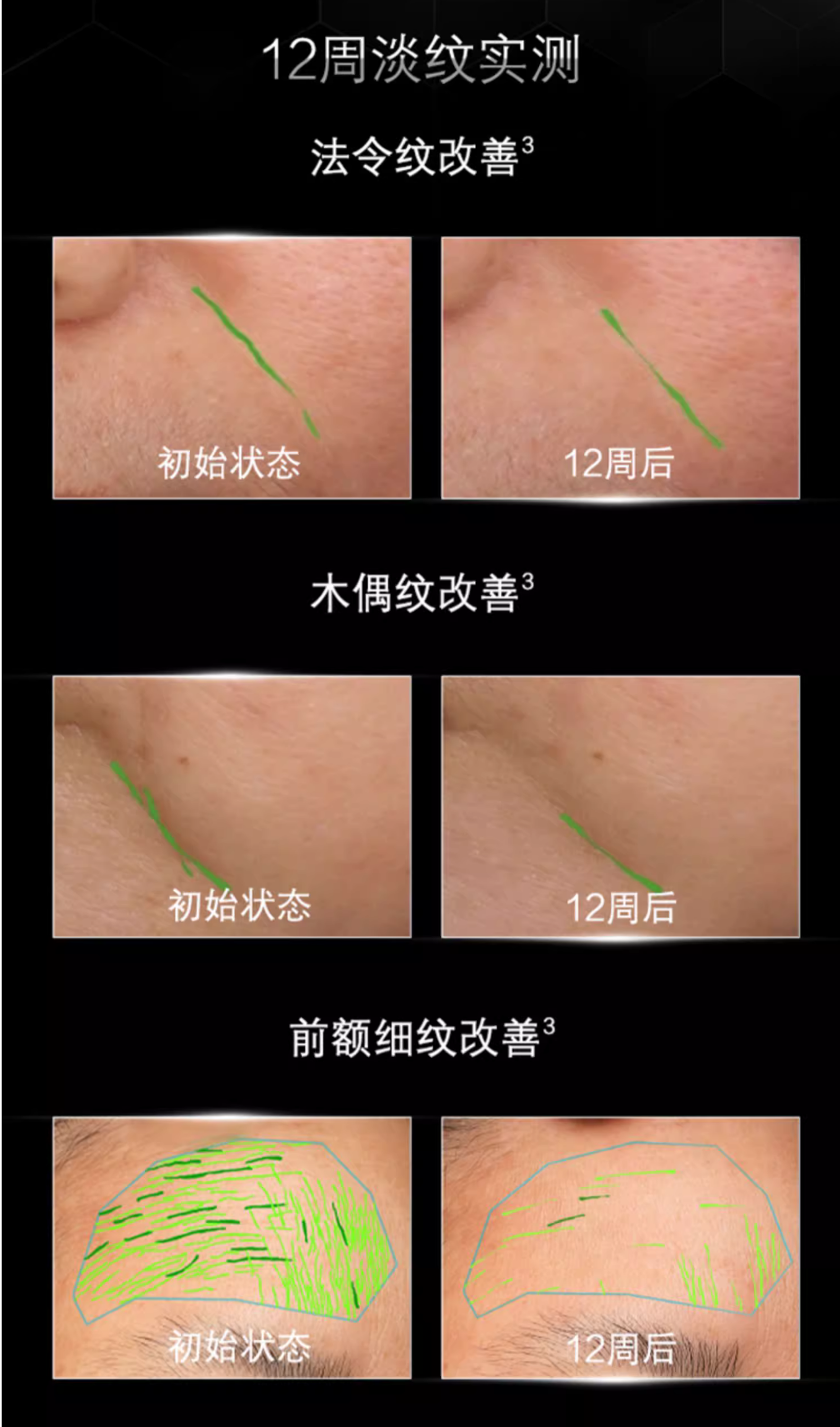 -44%法令纹;-58%抬头纹;-68%前额细纹。