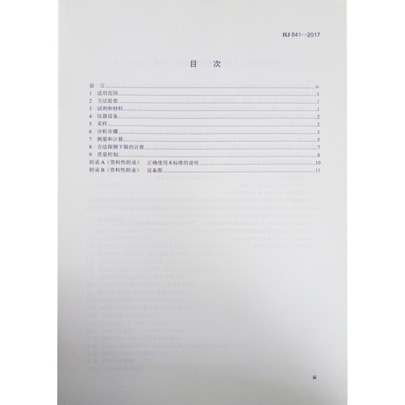 HJ 841-2017 水、牛奶、植物、动物甲状腺中碘-131的分析方法