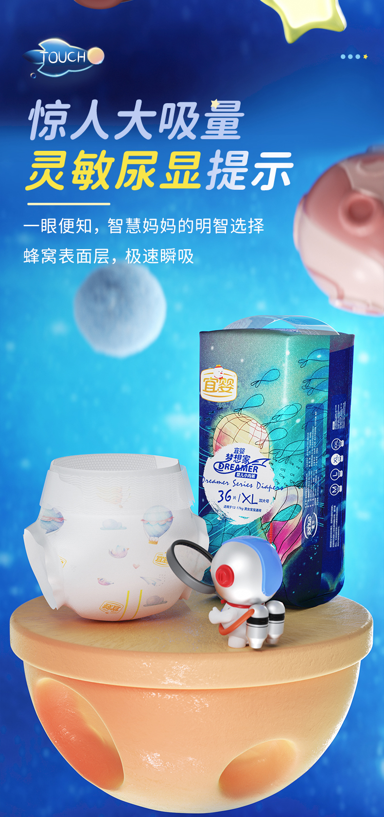 宜婴梦想家拉拉裤/纸尿裤M/L/XL/XXL超薄柔软干爽透气尿不湿
