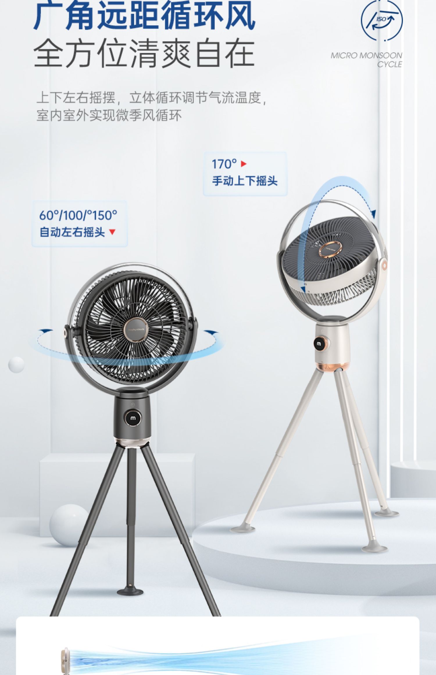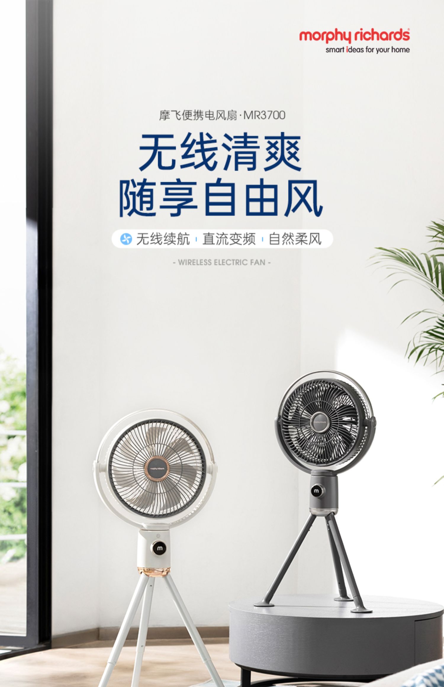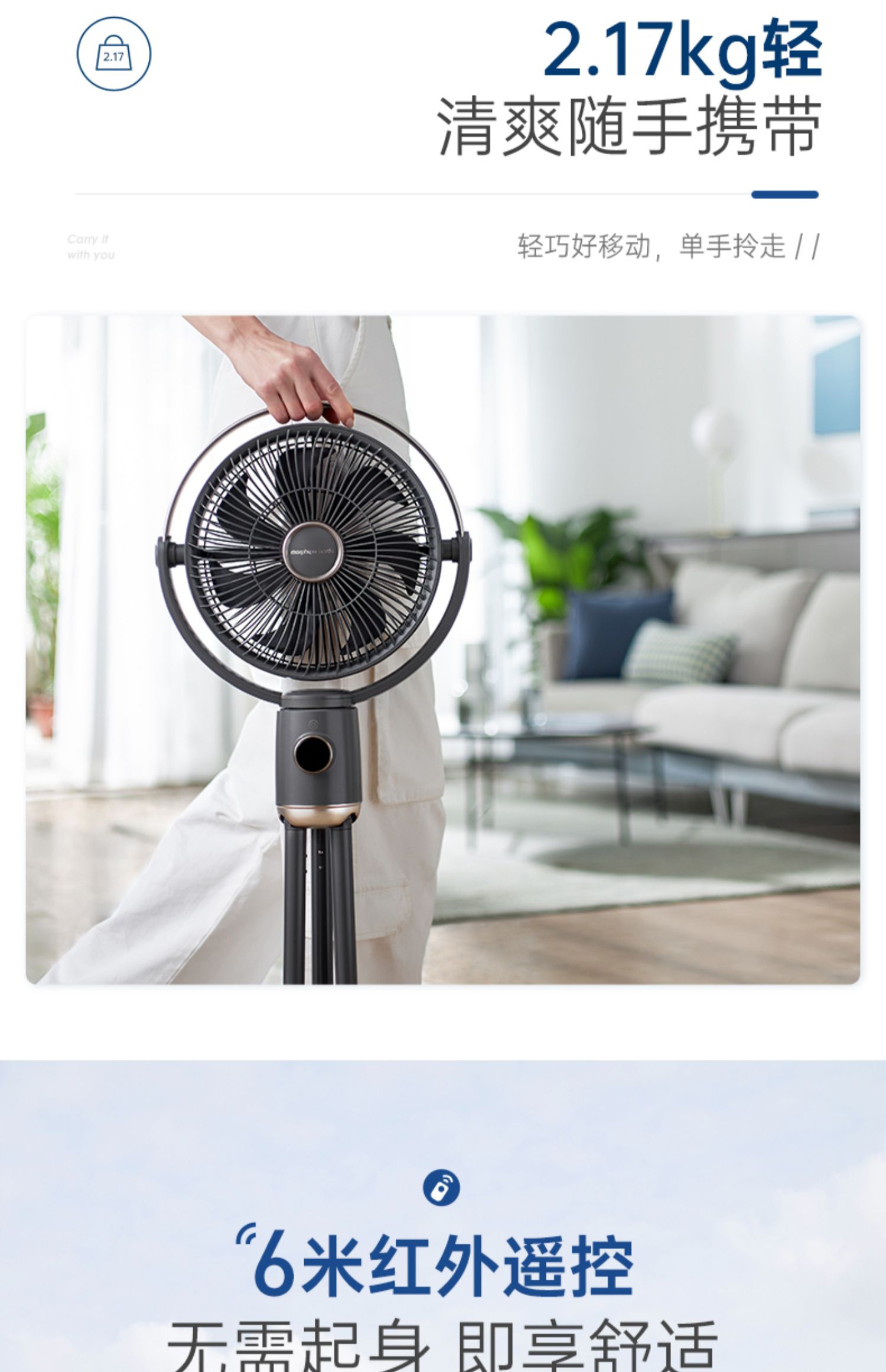 摩飞无线电风扇家用落地扇可充电无线便携式户外直流变频节能遥控风扇