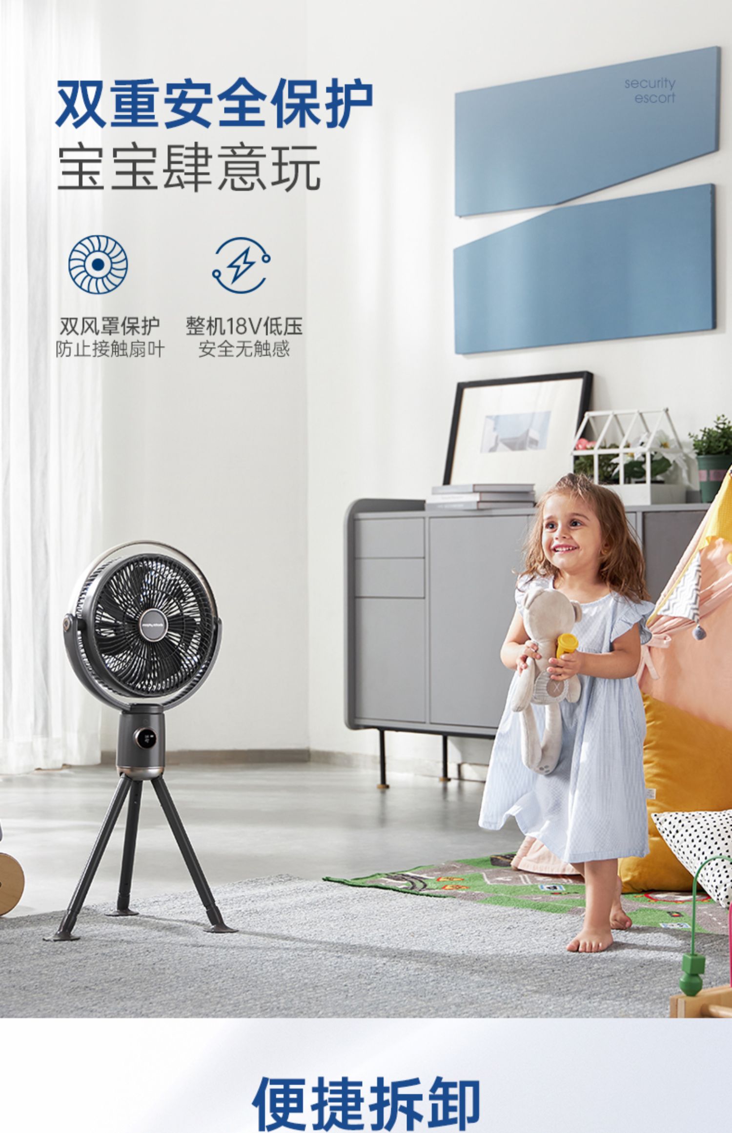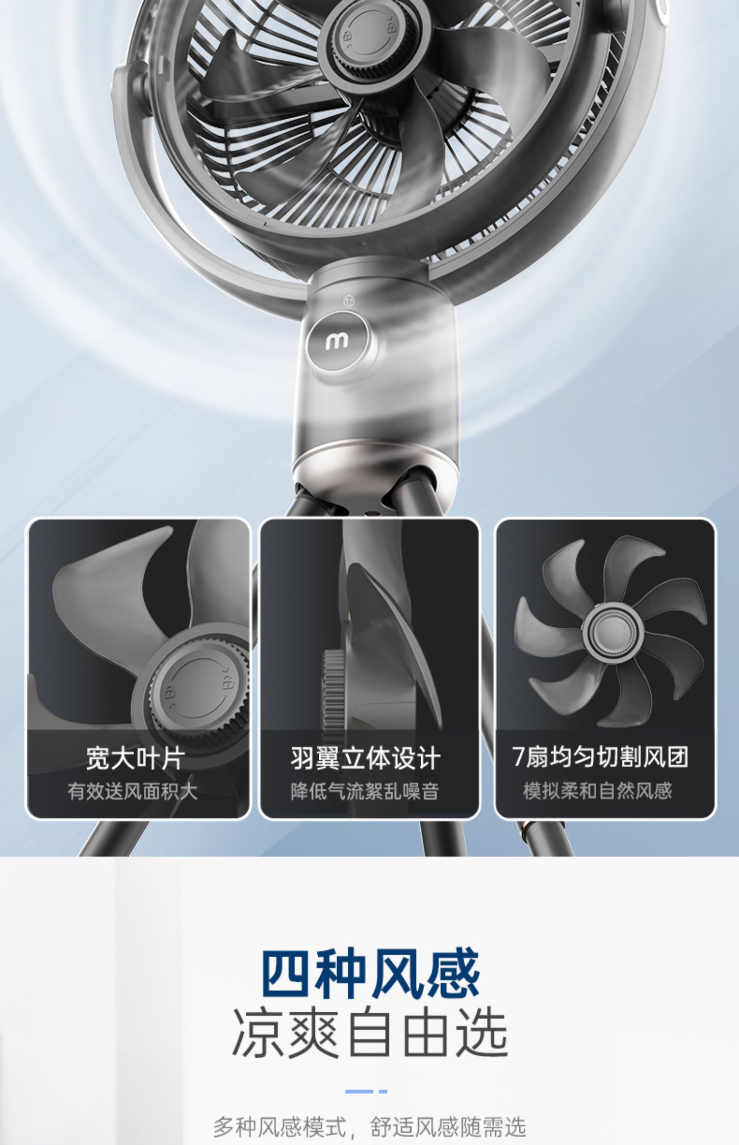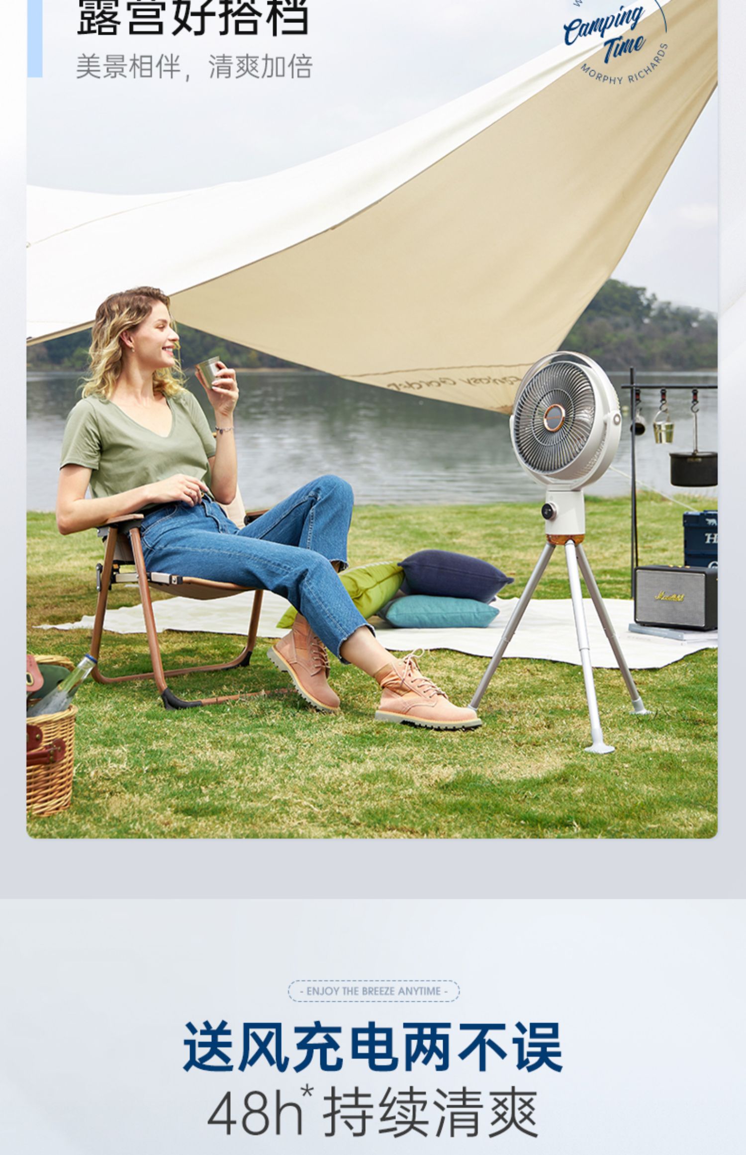 摩飞无线电风扇家用落地扇可充电无线便携式户外直流变频节能遥控风扇