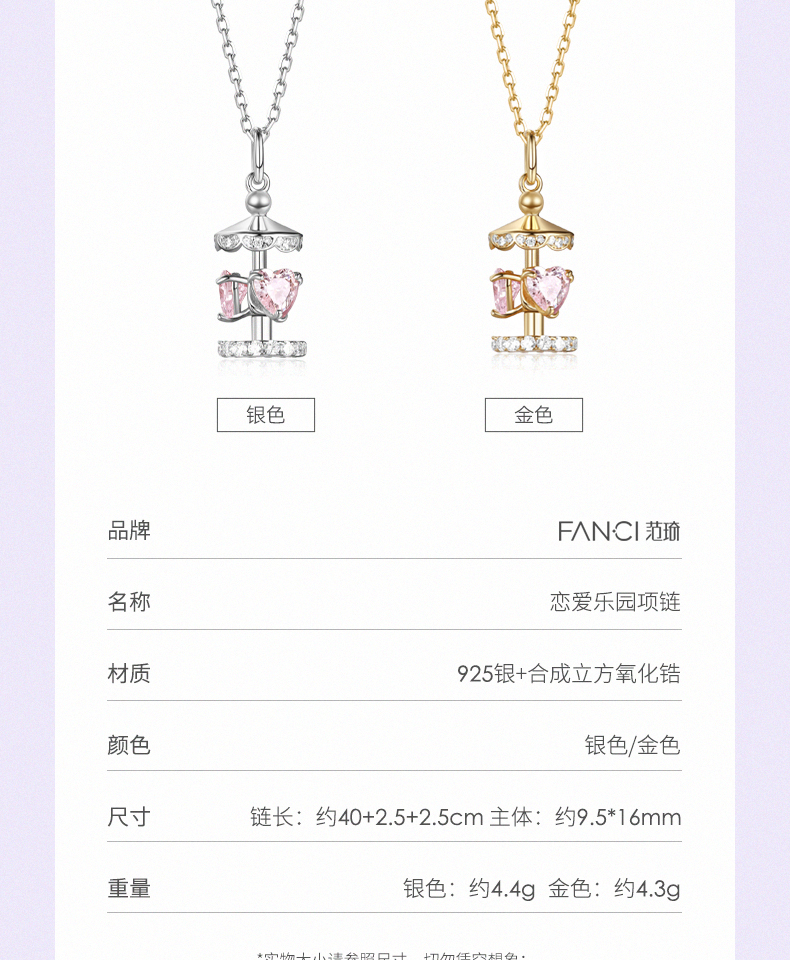 FANCI范琦始于2012年,以珠宝表达内心为初衷,聚焦不同亲密关系情感表达,联结无形情感,以情感符号「I FANCI U」传情达意,诠释“恋爱戴范琦,起点是你,终点亦是你”始终如一的恋爱价值观。