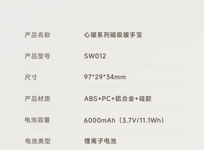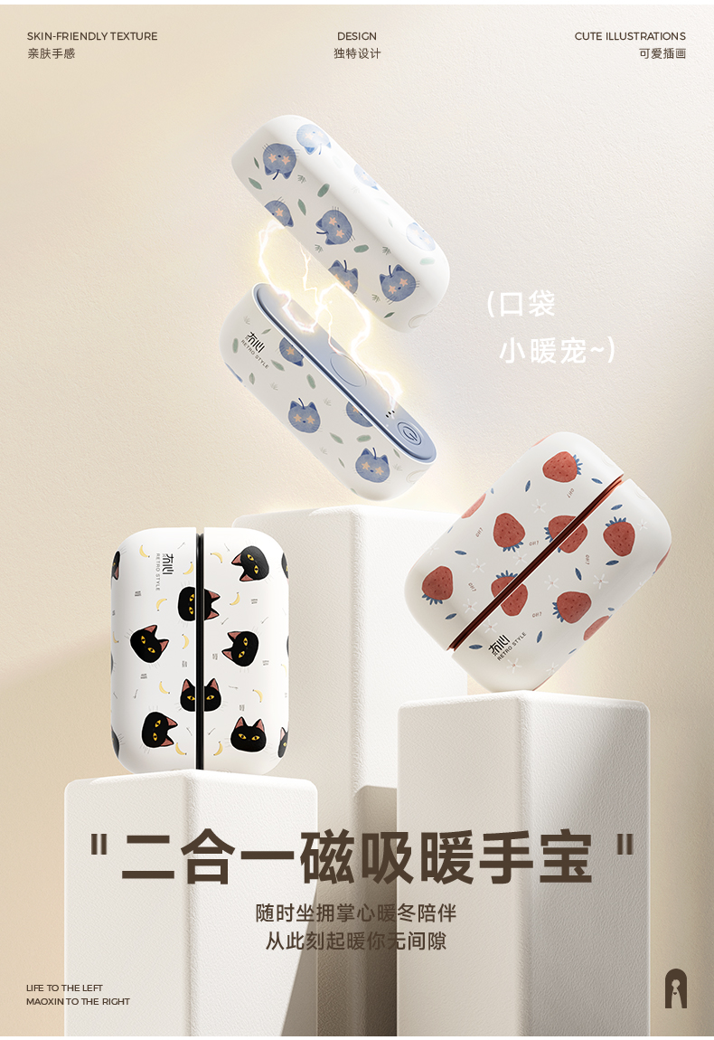 优选丨冇心【二合一磁吸暖手宝】 心暖系列磁吸暖手宝SW012 一秒速热 六面恒温 三档控温 15h续航 6000mAh大容量电池 轻巧便携 可自由拆分