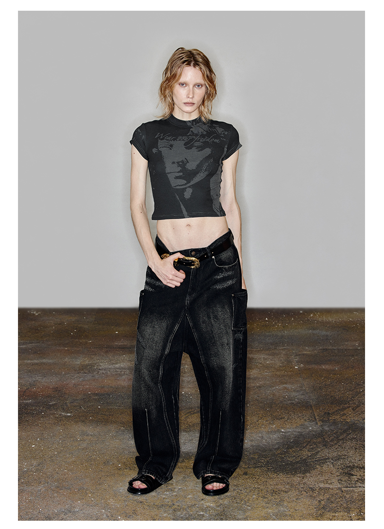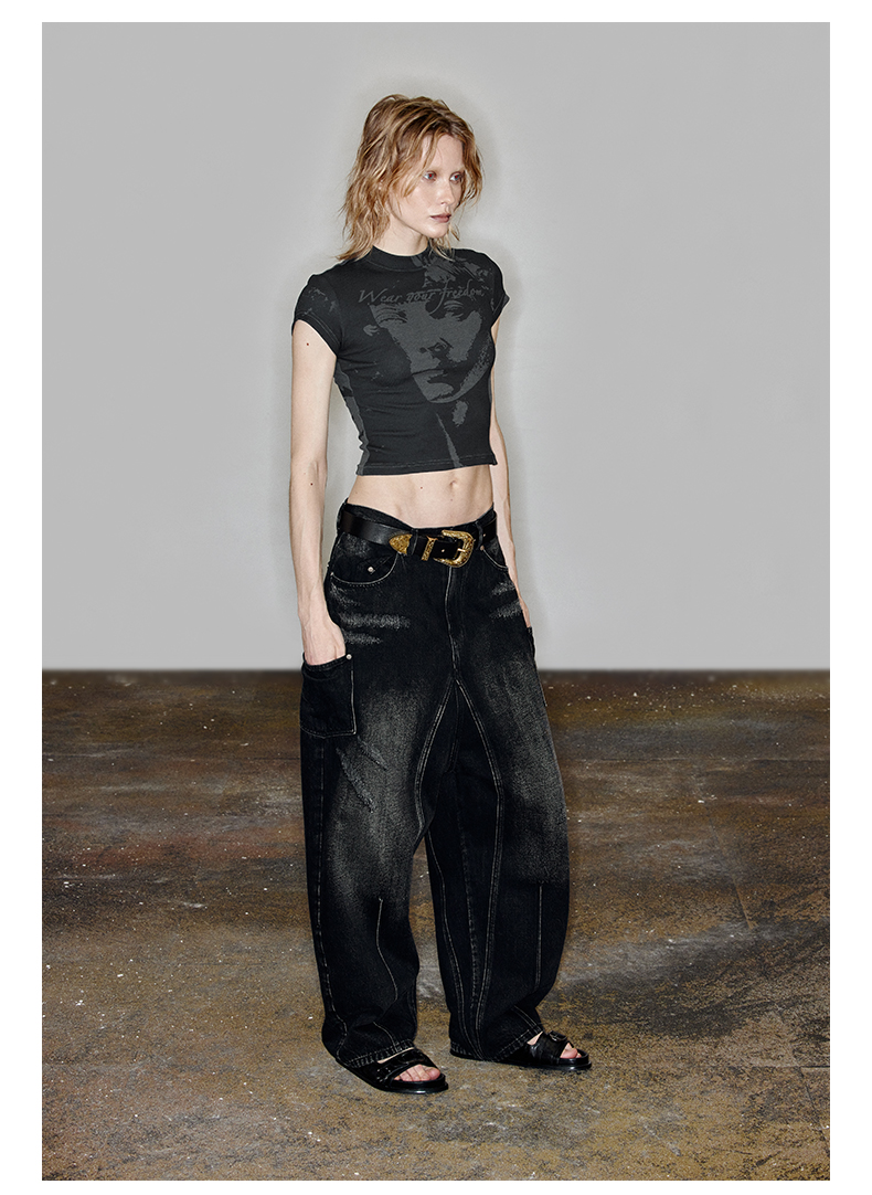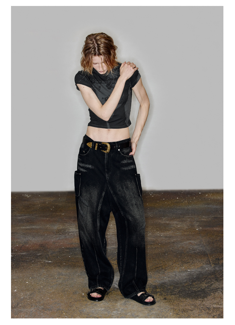 NUTH ‘Unisex’ 百搭可翻折腰头水洗做旧牛仔裤 Pleats Jeans