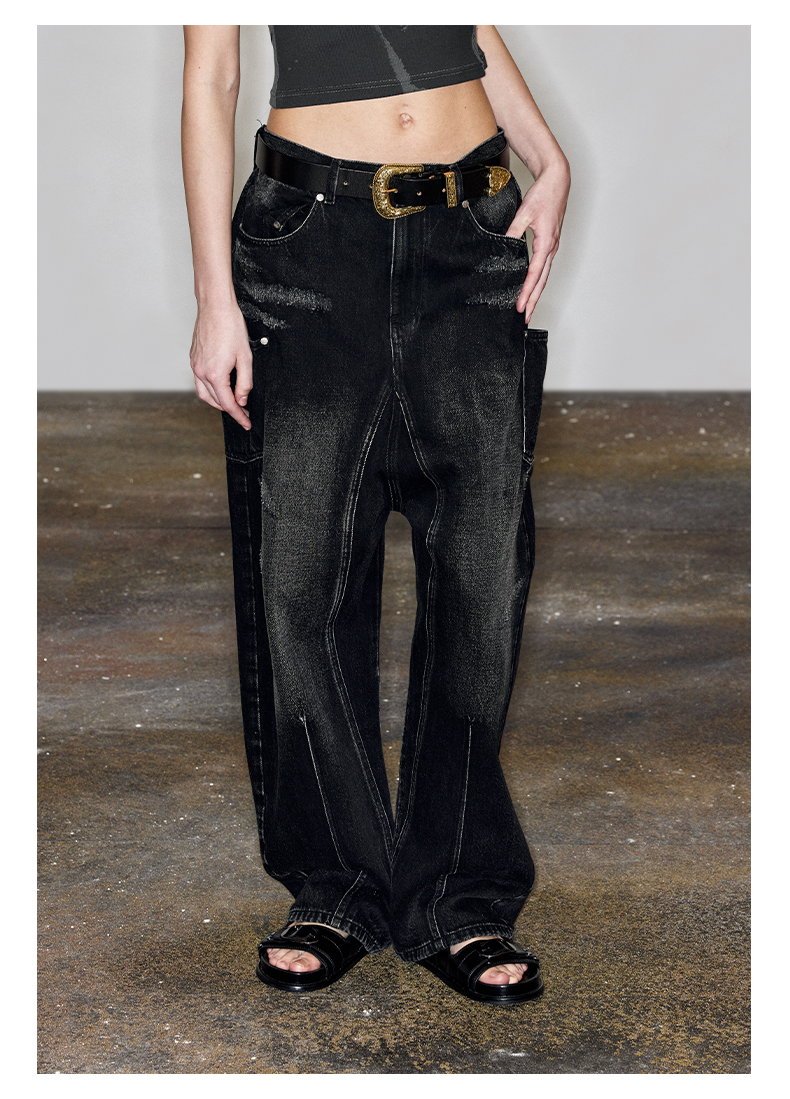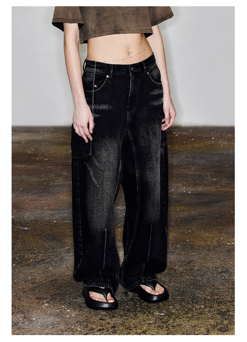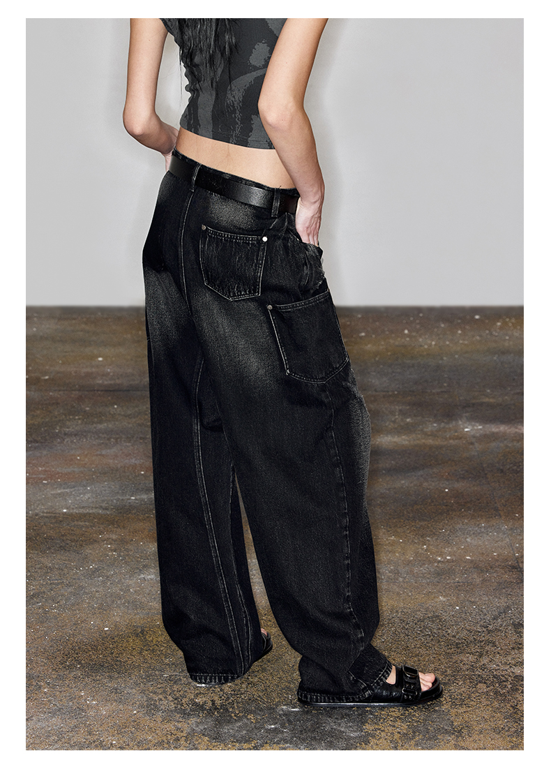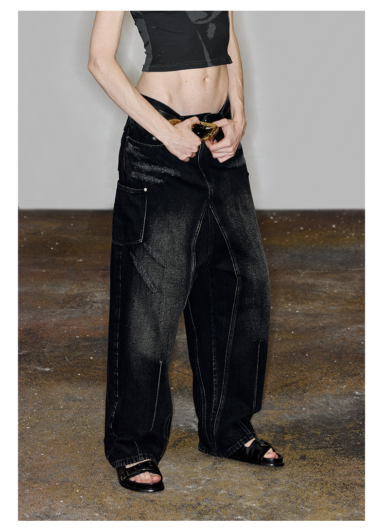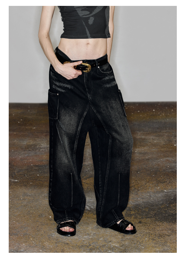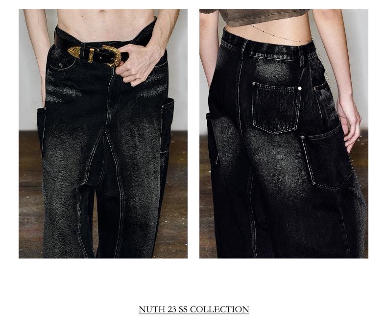 NUTH“小飞鼠”|黑色牛仔裤设计感复古宽松阔腿牛仔裤