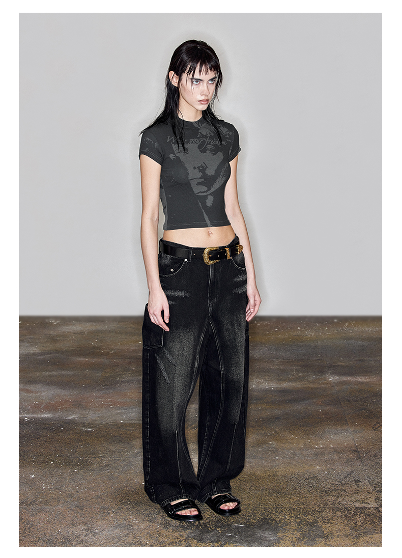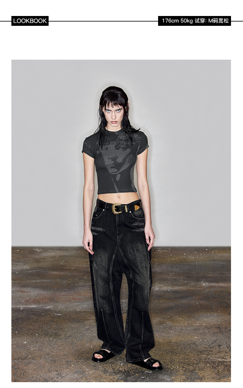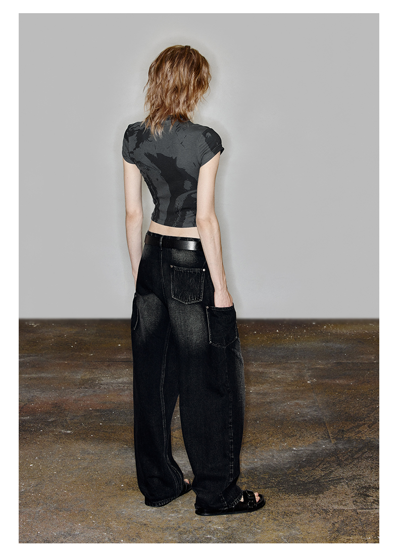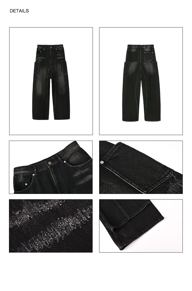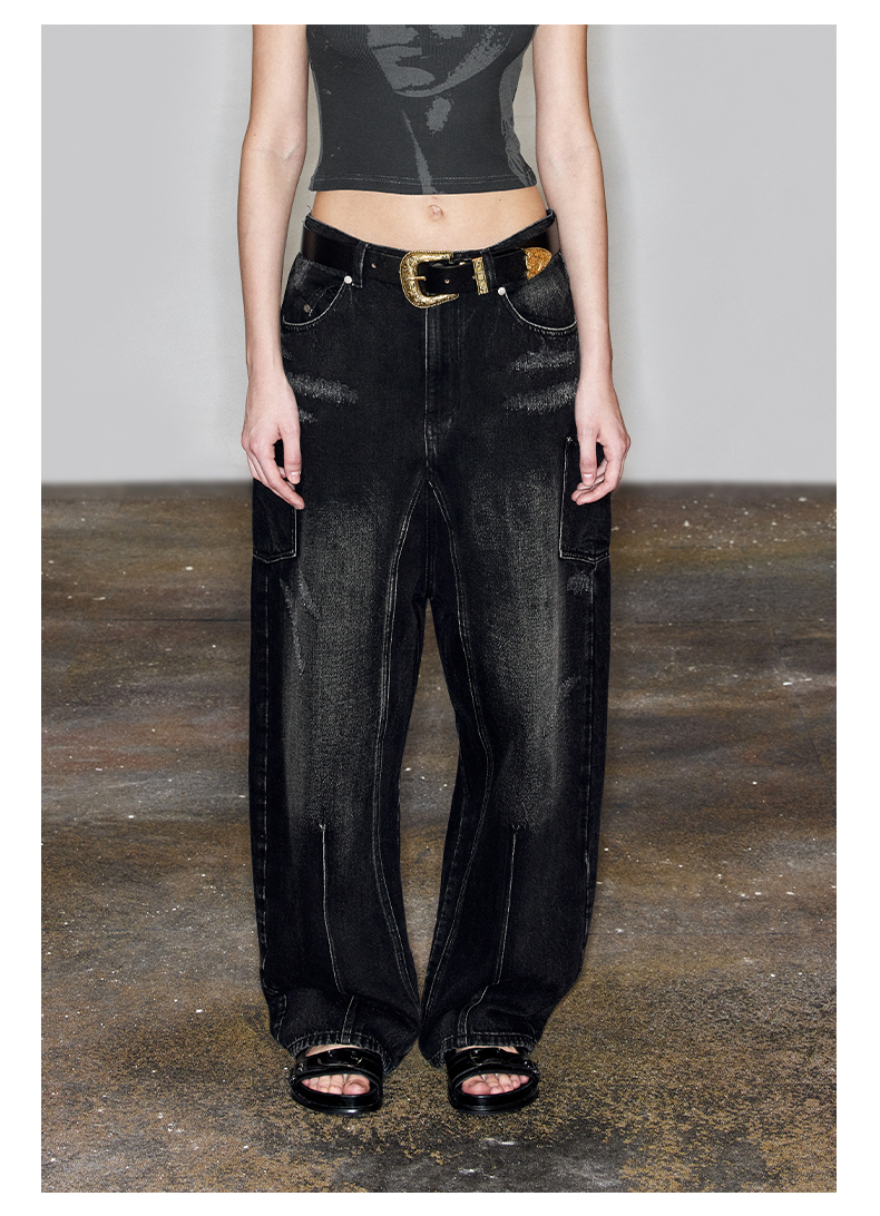NUTH“小飞鼠”|黑色牛仔裤设计感复古宽松阔腿牛仔裤