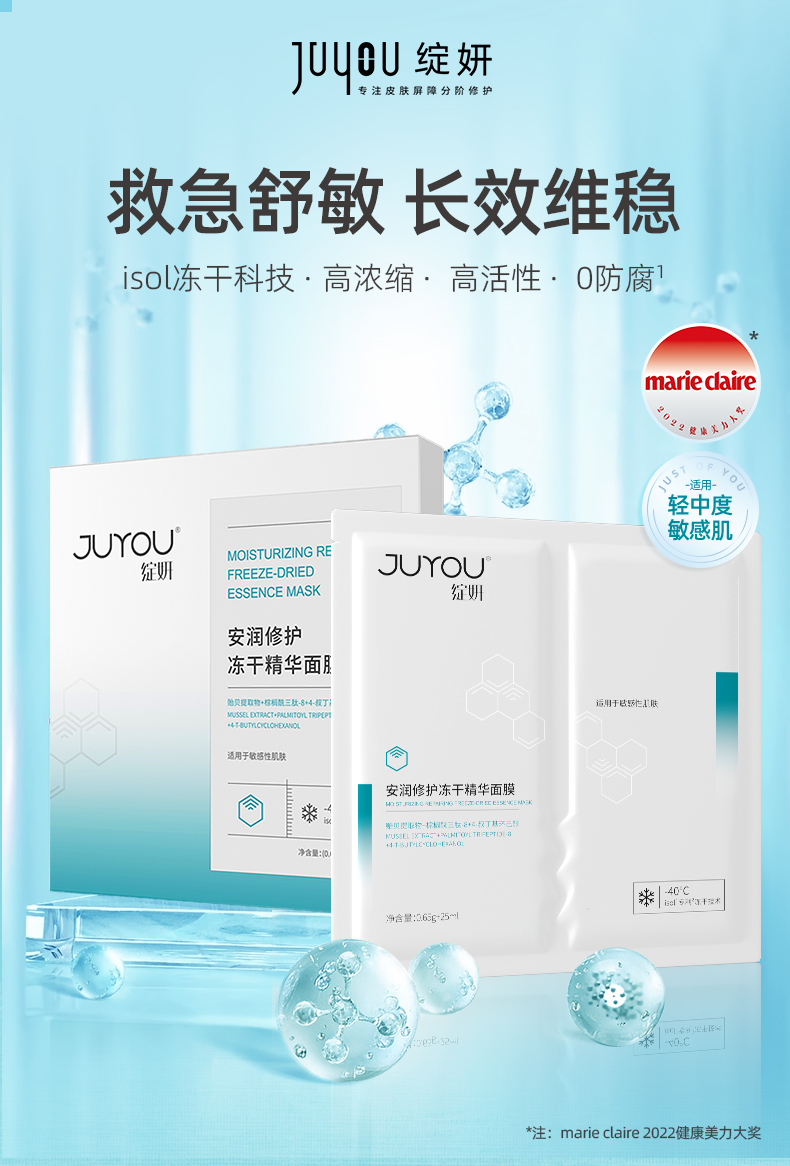 绽妍 冻干面膜 敏感肌舒缓 泛红干痒刺痛 春夏补水保湿修护屏障 心选到家