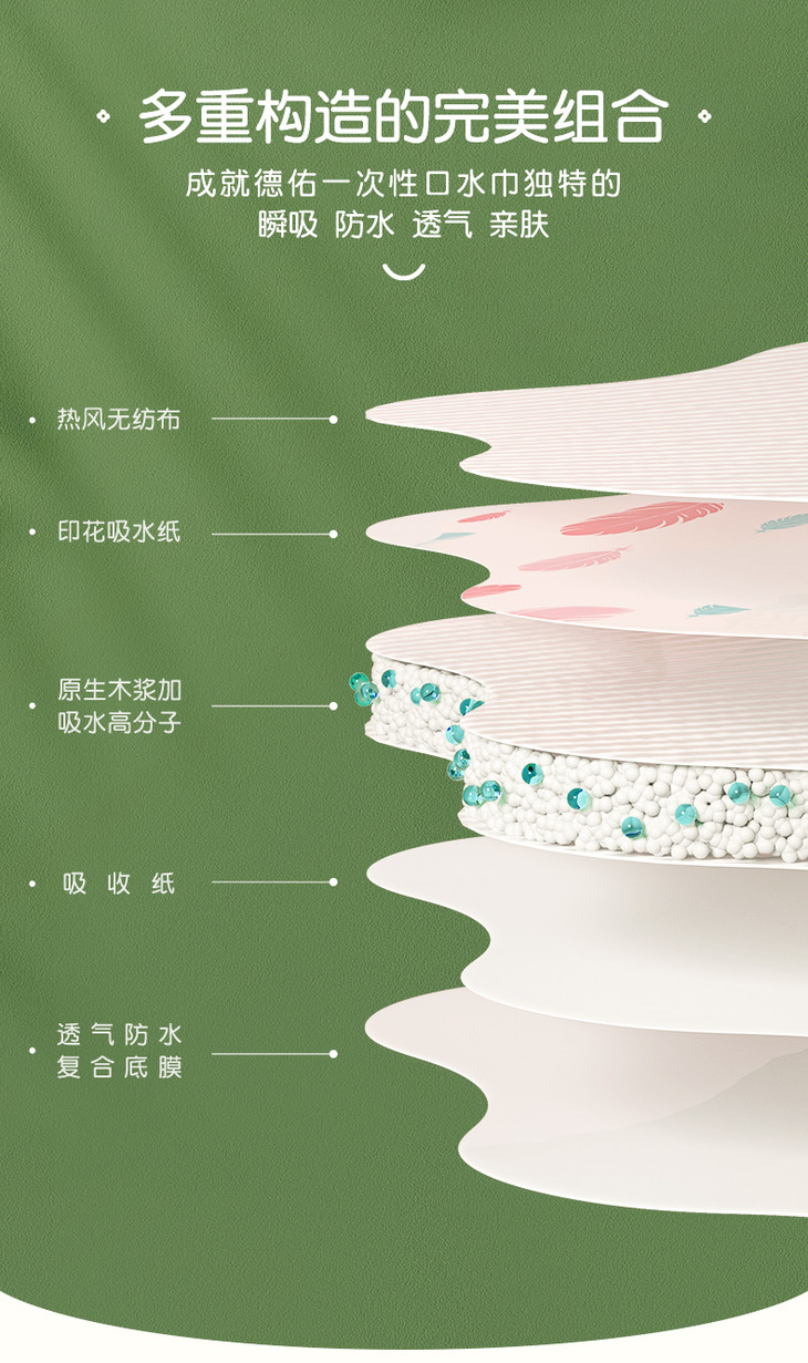 德佑新生儿一次性口水巾全新升级3色可选20片*1盒
