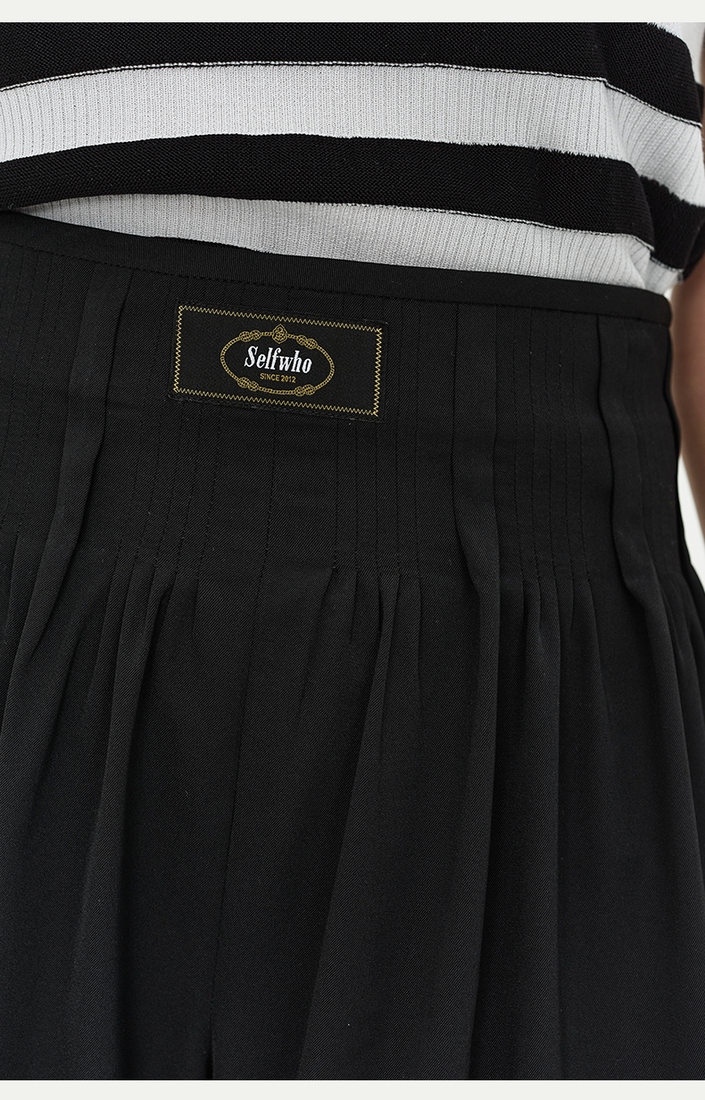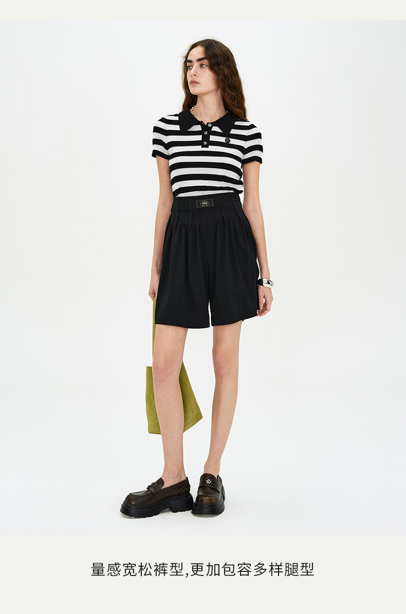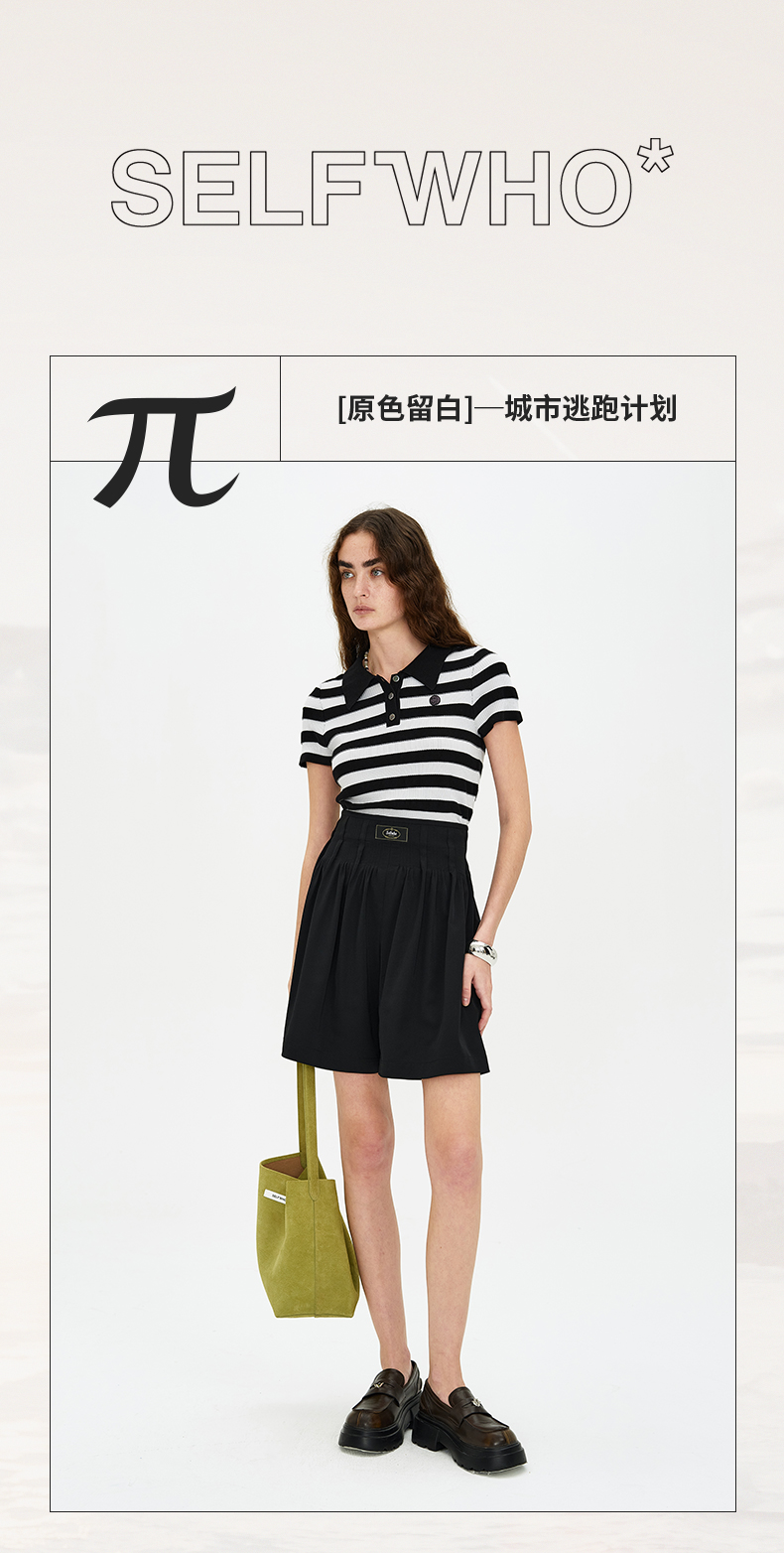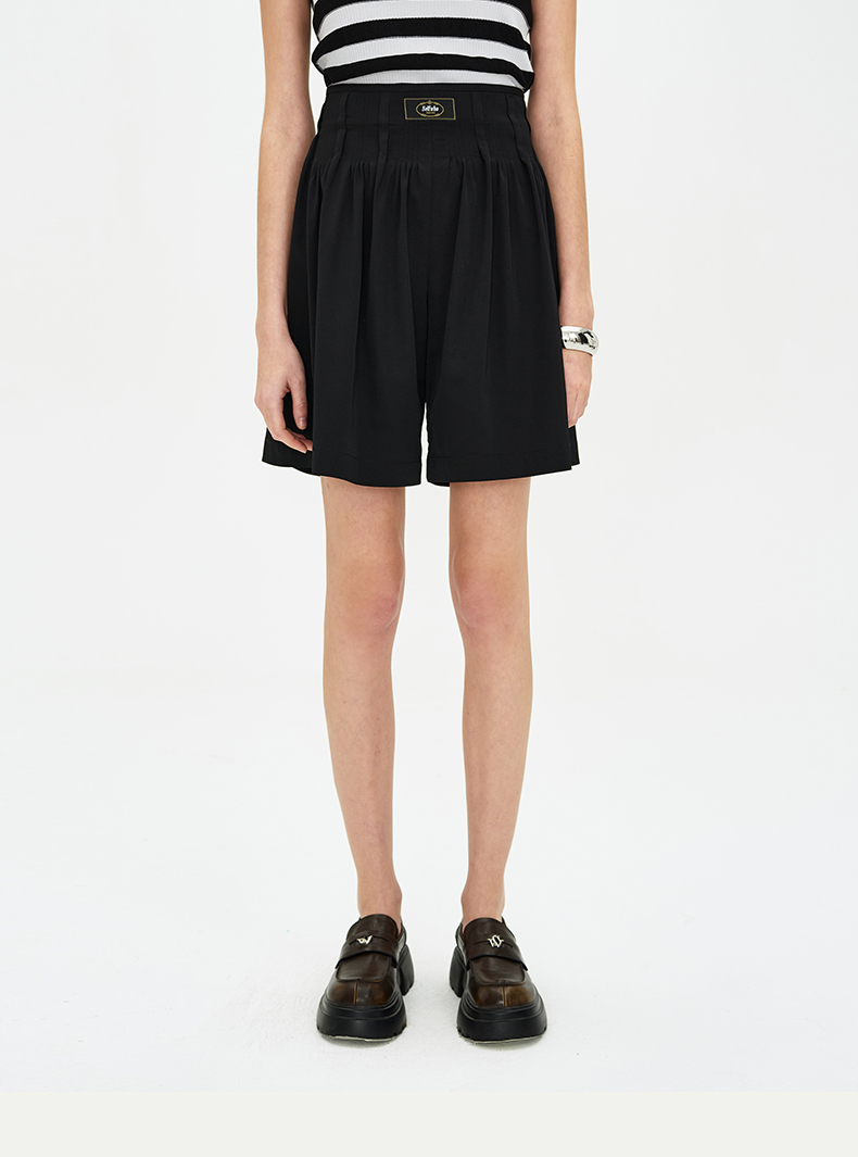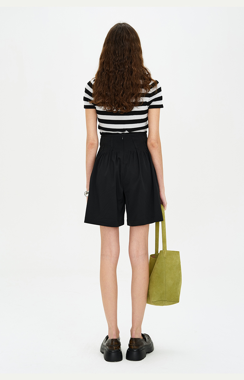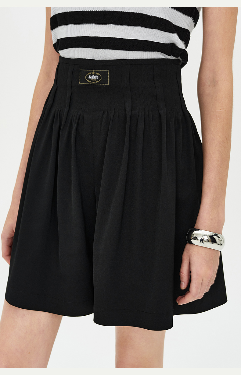 SELFWHO黑色醋酸短裤女夏季2024新款吸湿透气收腰显瘦设计感裤子