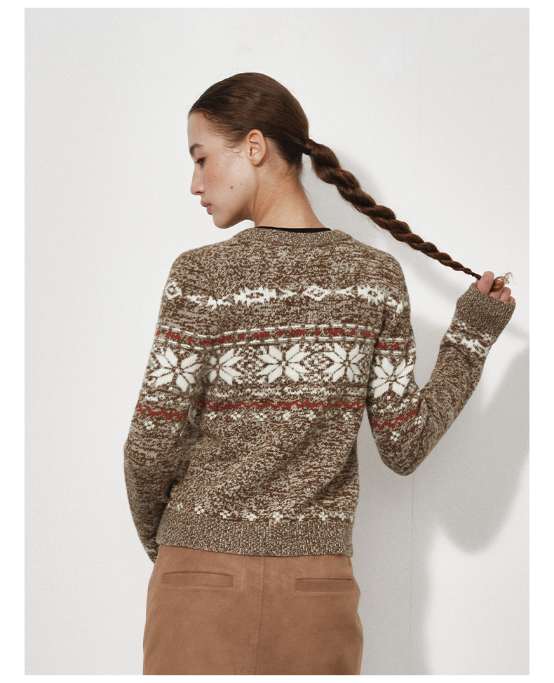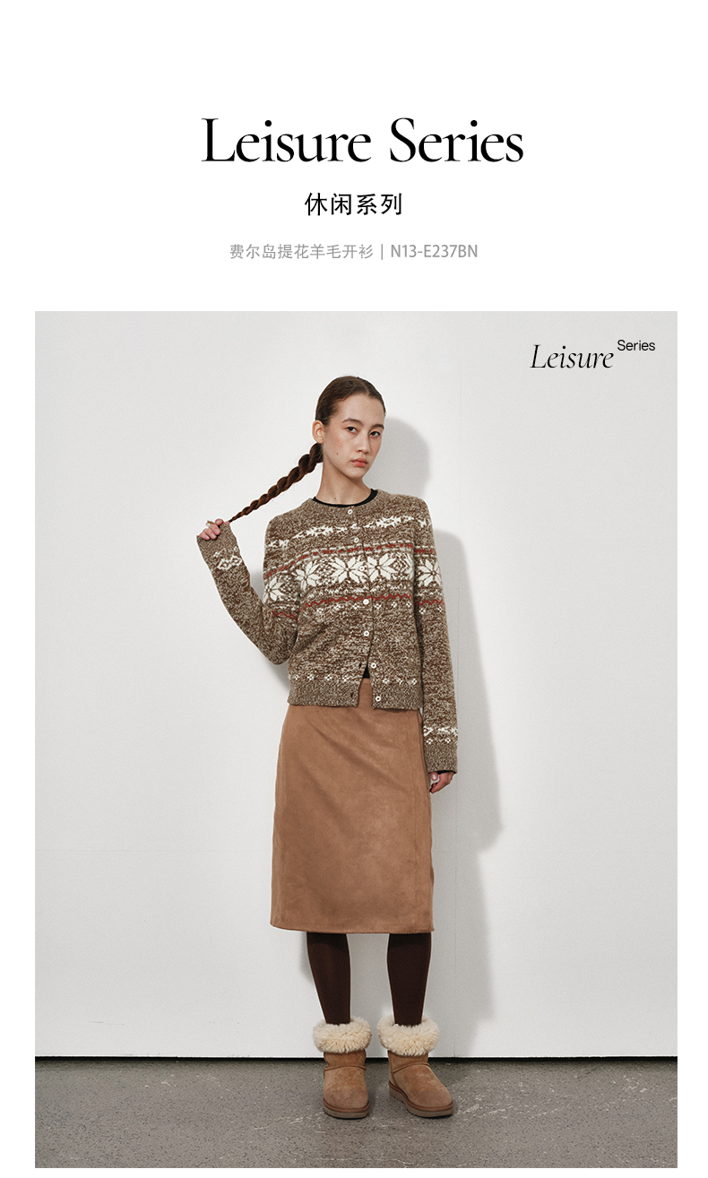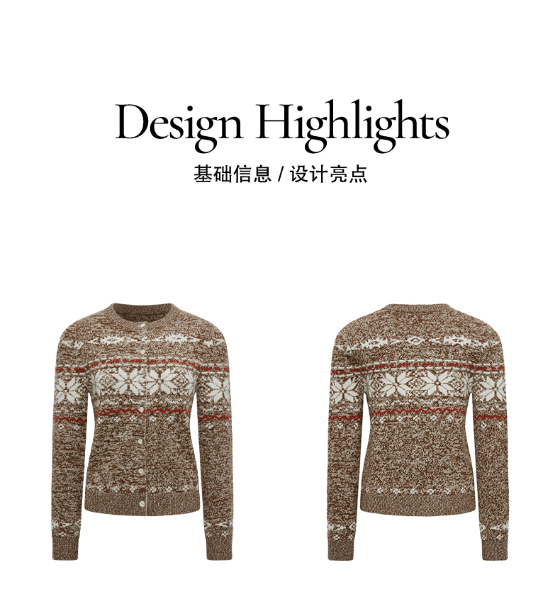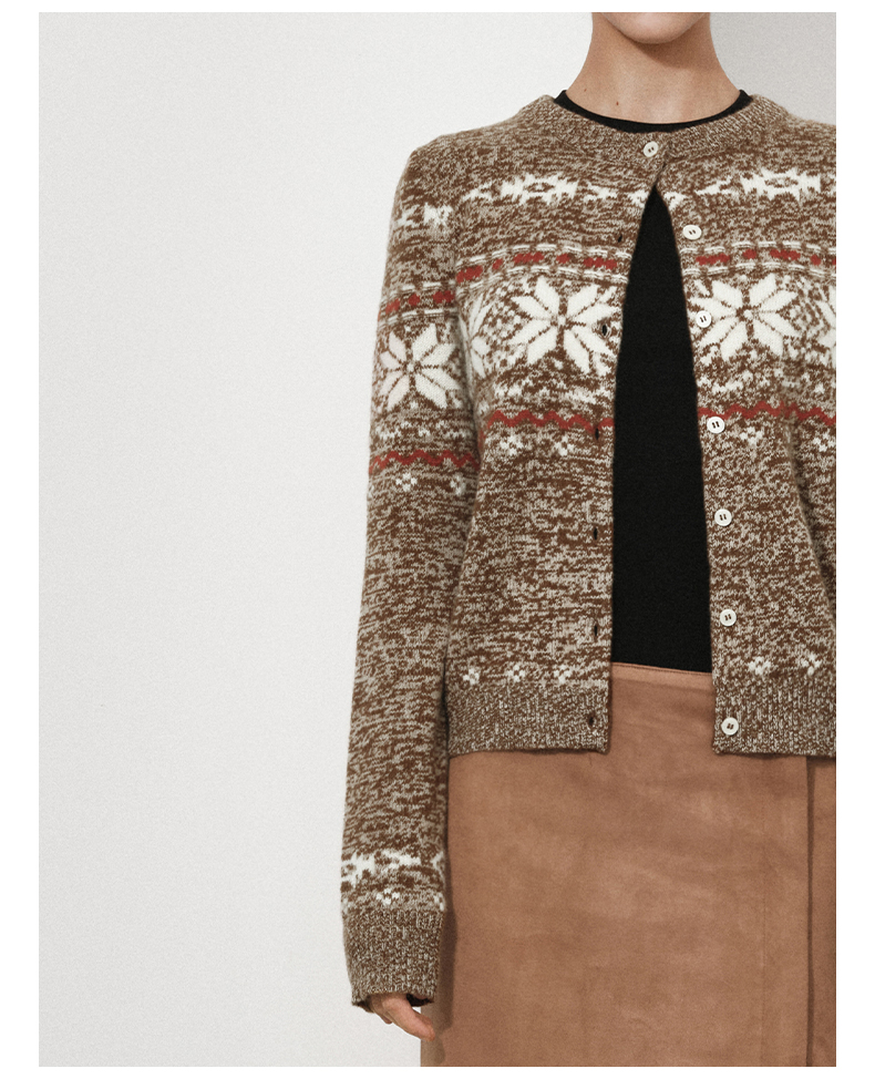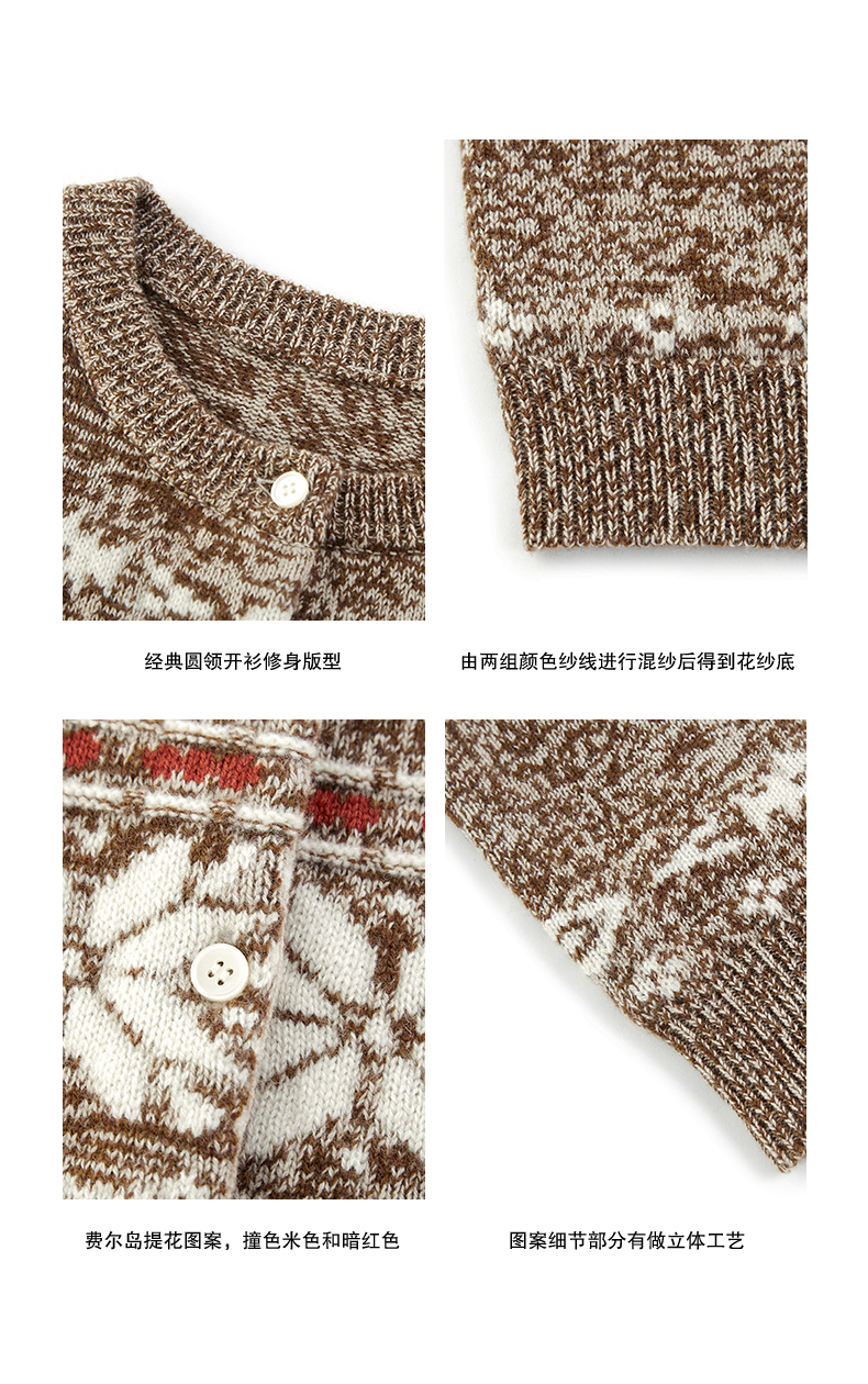 NUTH 美利奴羊毛费尔岛提花修身短款针织开衫女 棕咖色