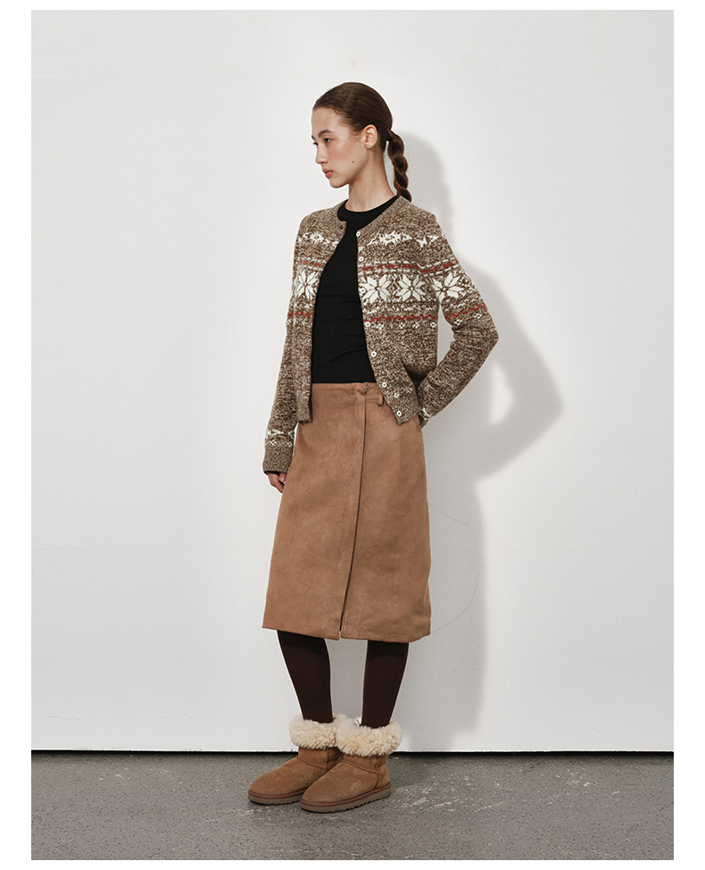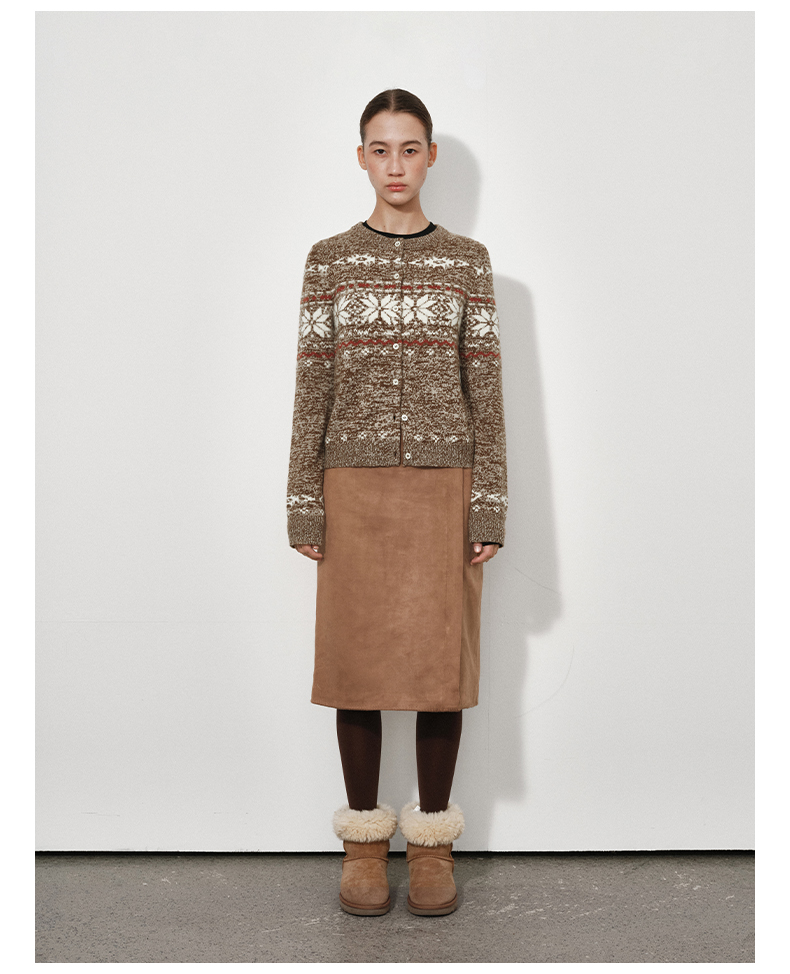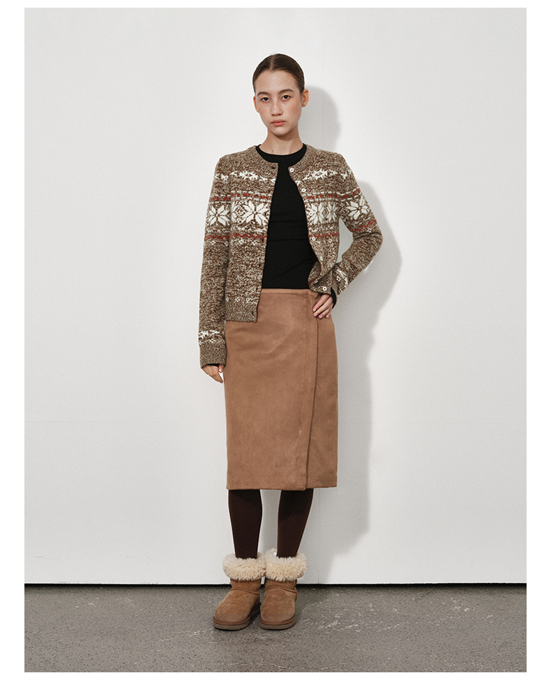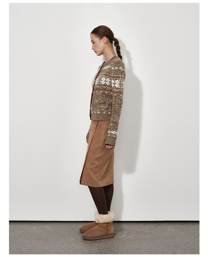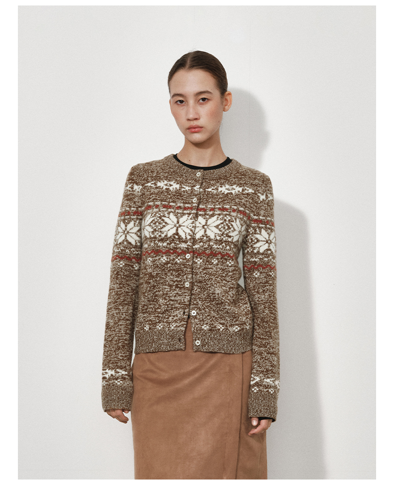 NUTH 美利奴羊毛费尔岛提花修身短款针织开衫女 棕咖色