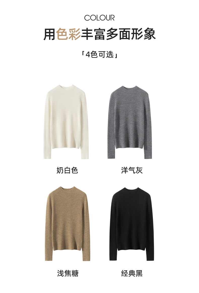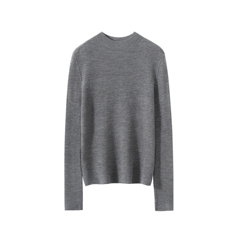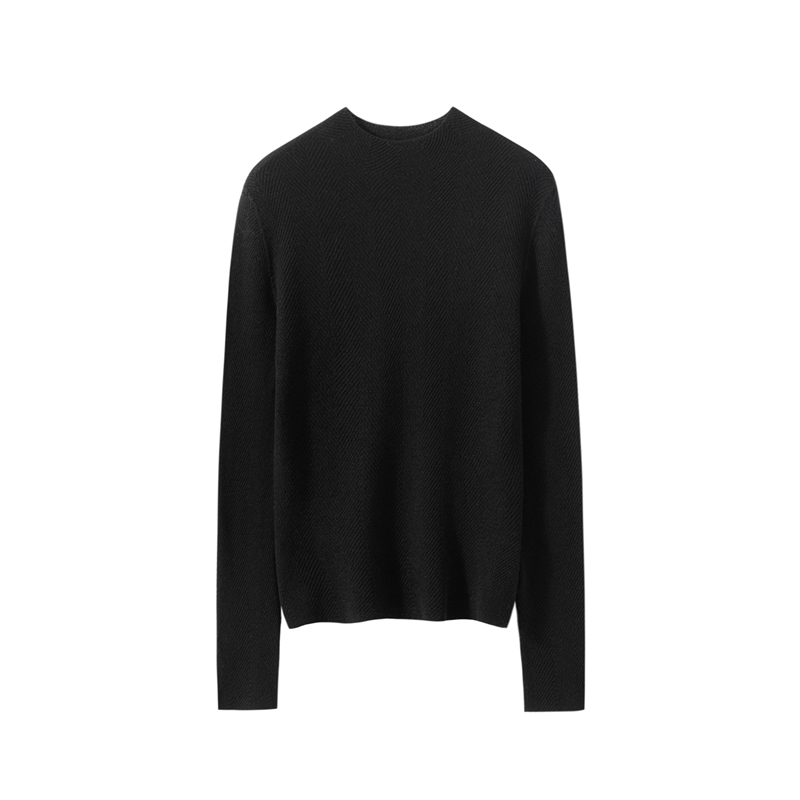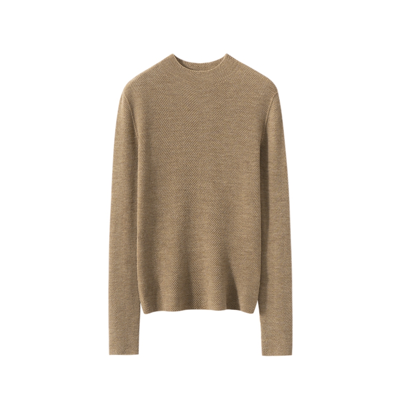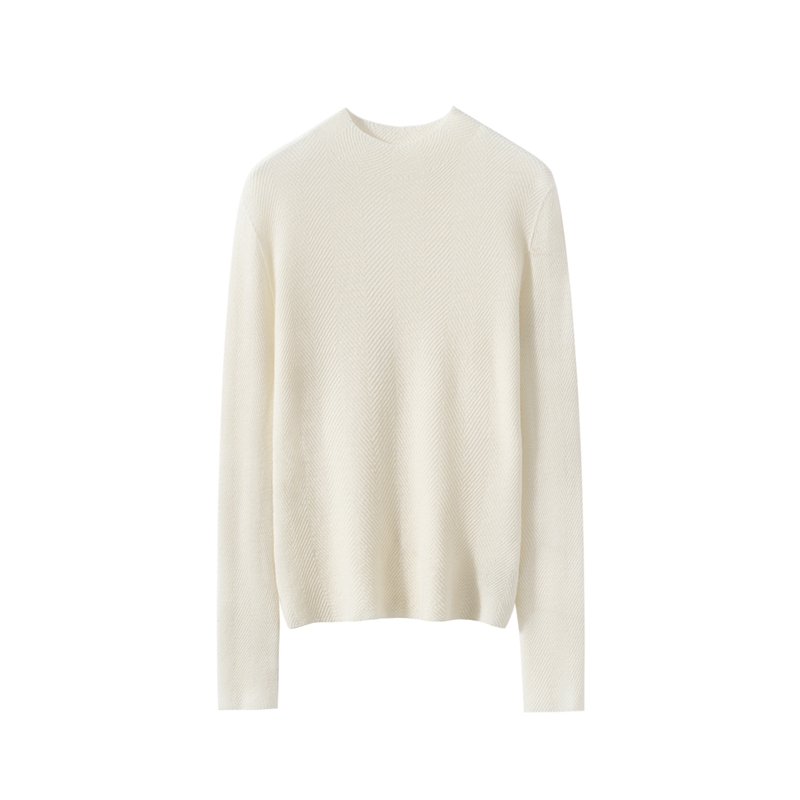 柔金肌理~精纺纯羊 毛扬子纱鱼骨纹半高领长袖针织衫女