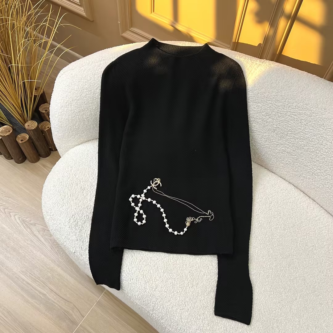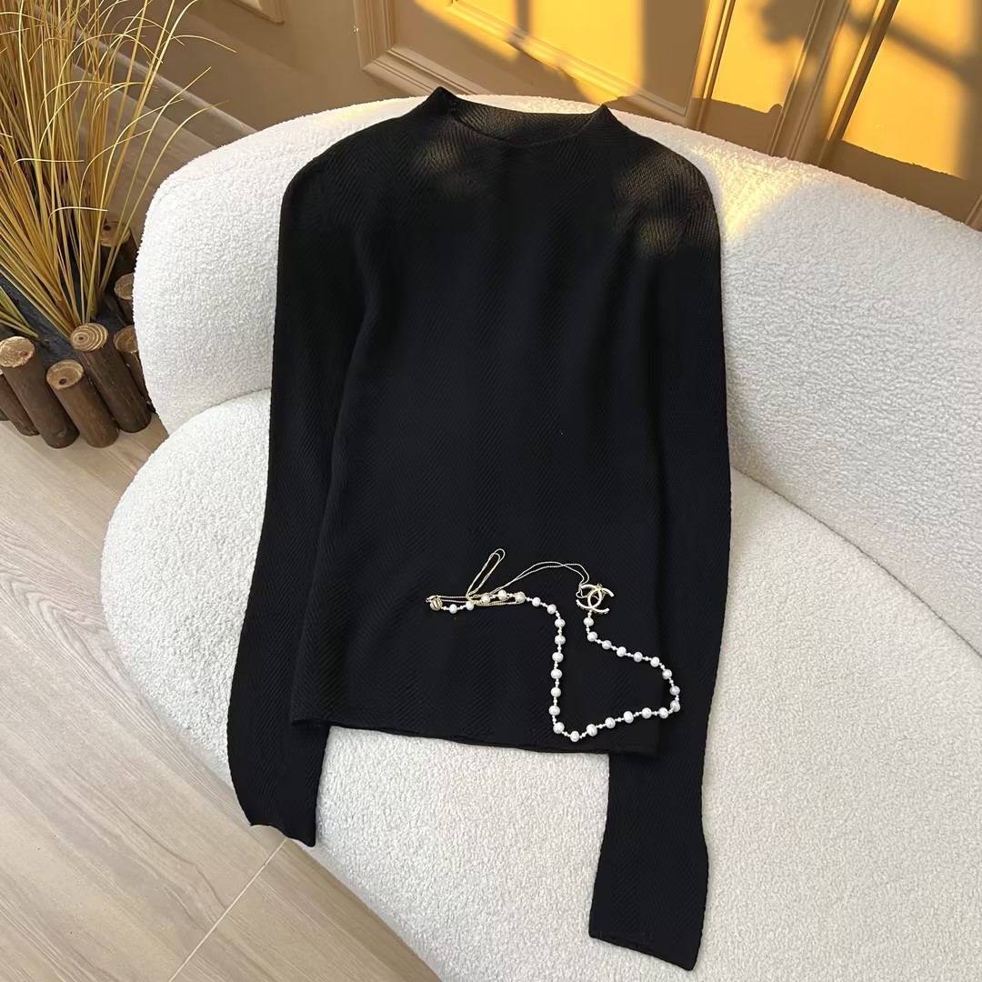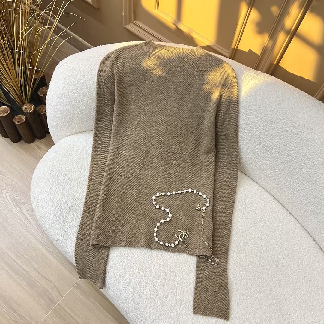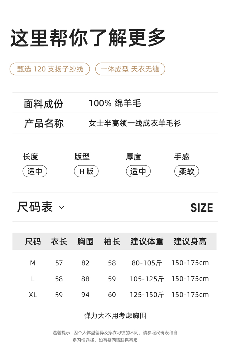 柔金肌理~精纺纯羊 毛扬子纱鱼骨纹半高领长袖针织衫女