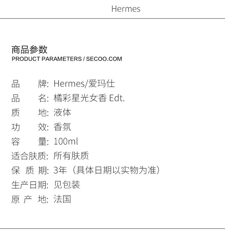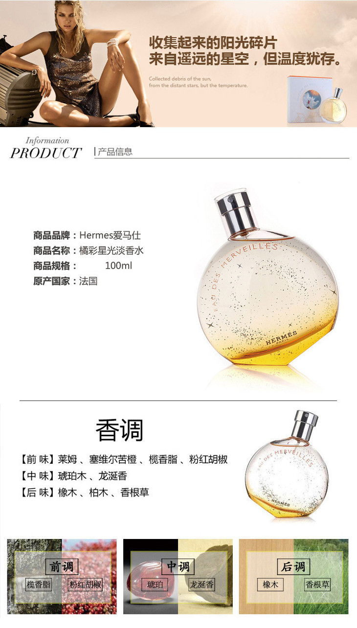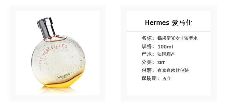 HERMES爱马仕橘彩星光女士香水50ml/100ml EDT