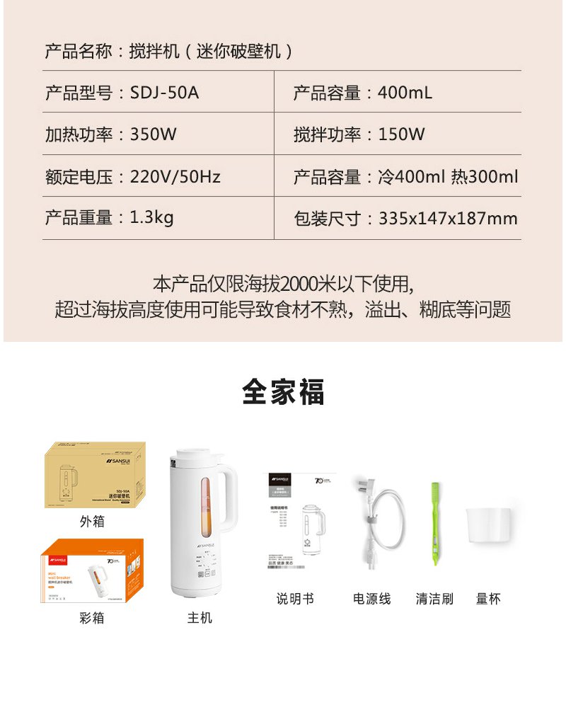 山水(SANSUI)豆浆机 迷你 SDJ-50A
