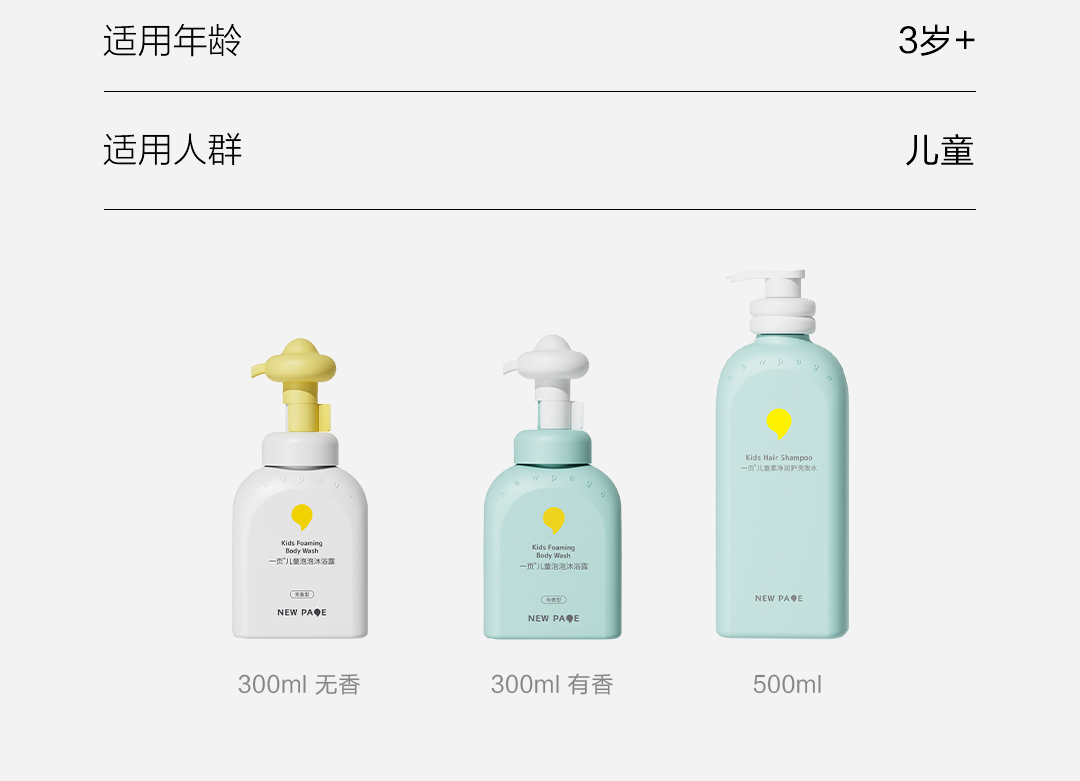 【秒杀最后20套】newpage一页儿童泡泡沐浴露沐浴露洗发水清洁套组3岁+专用